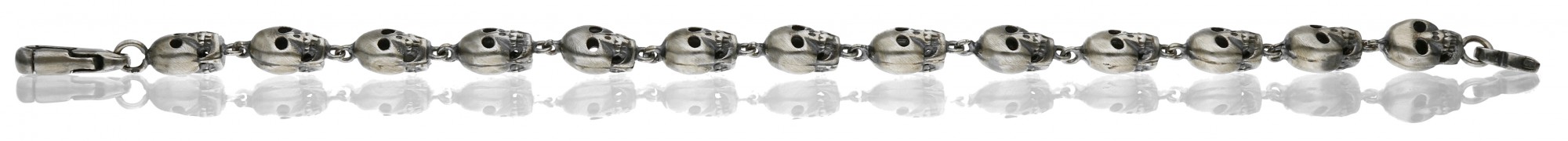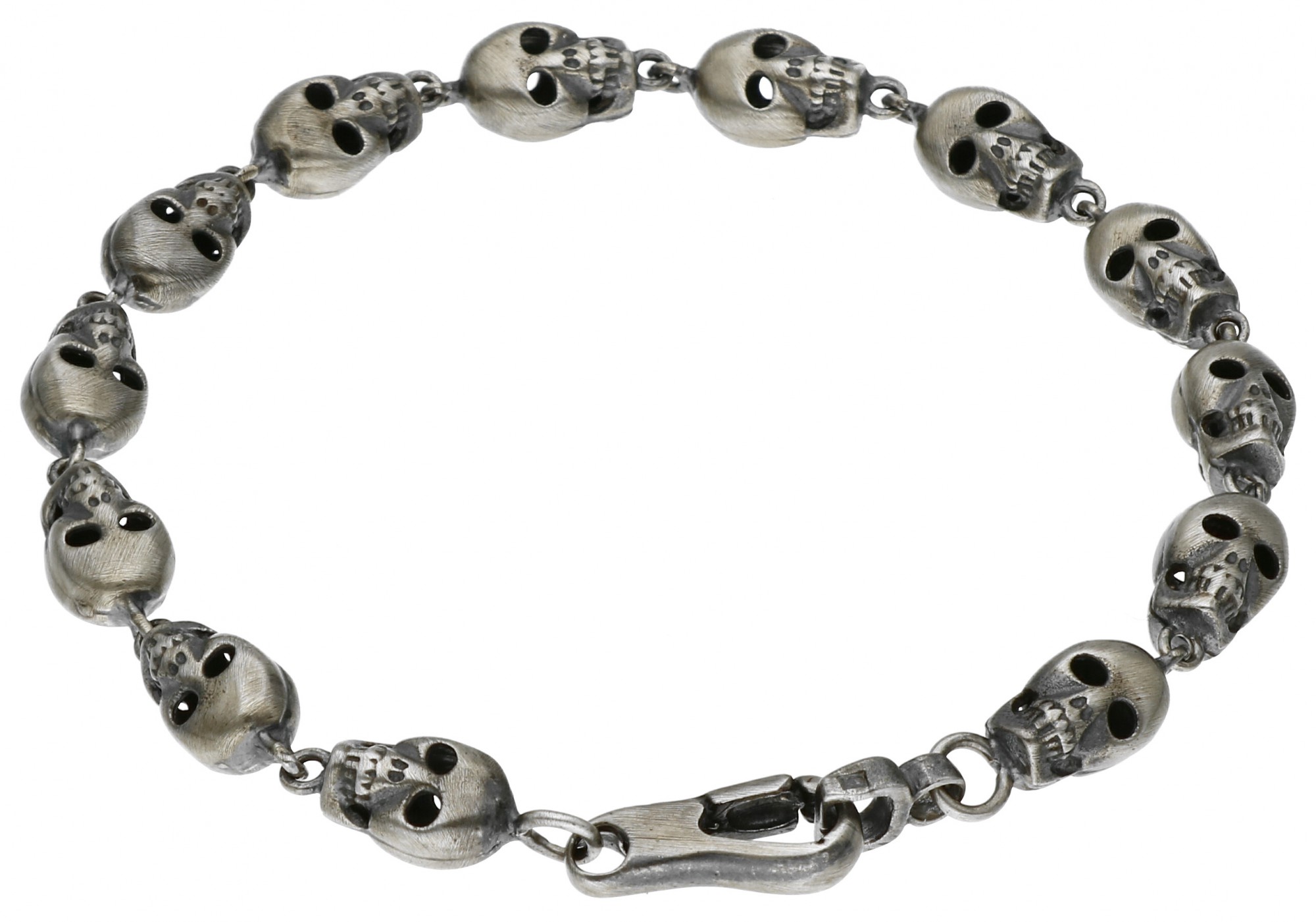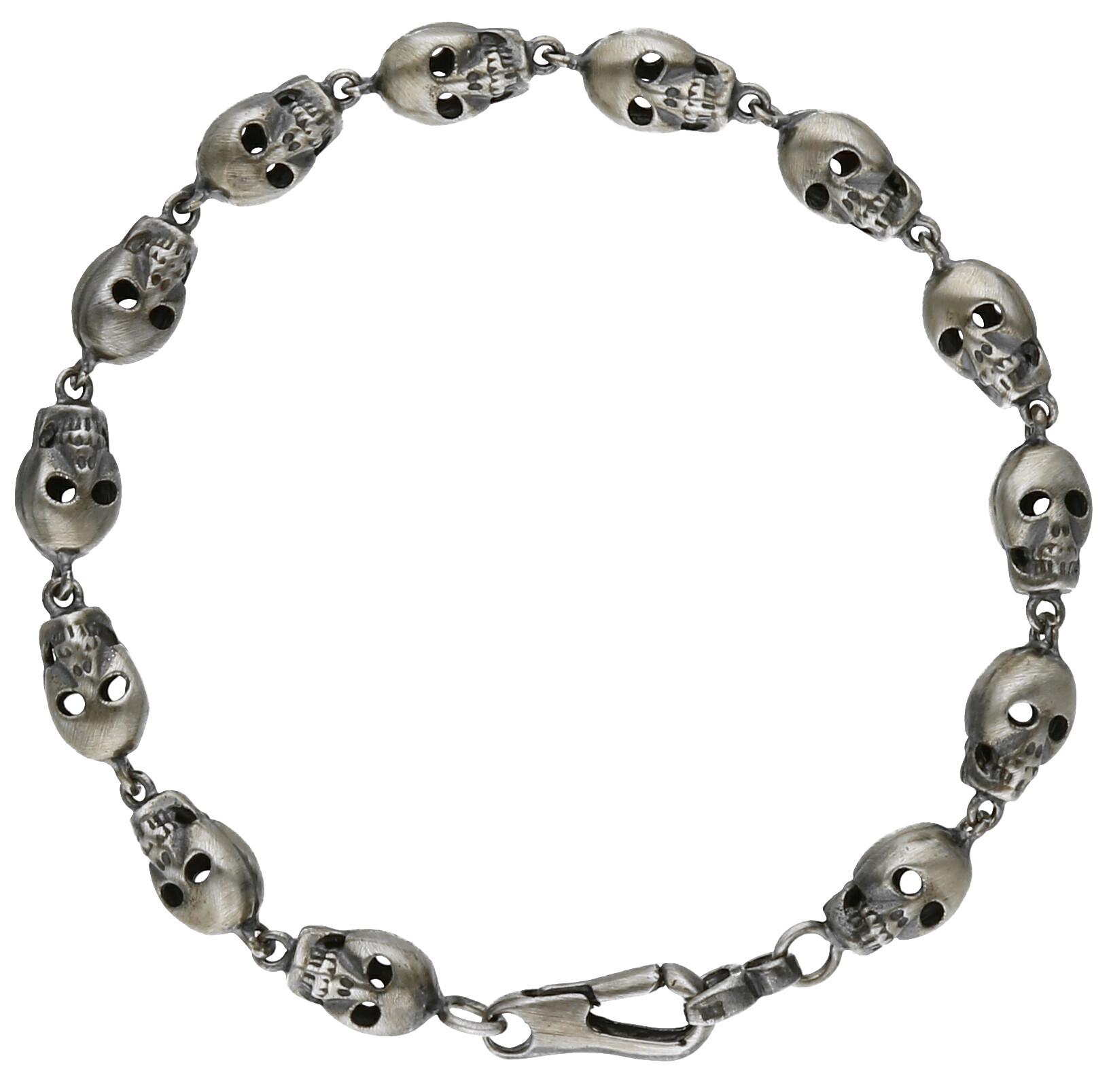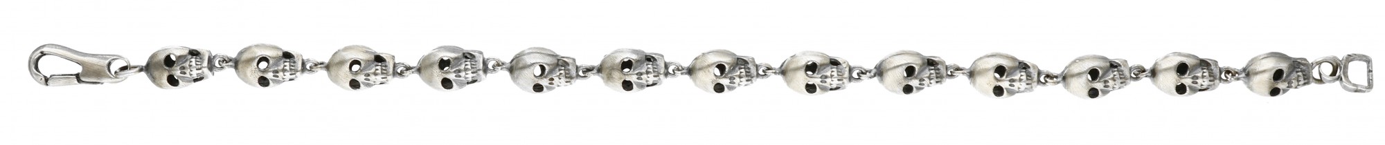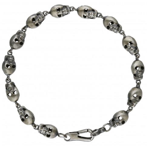 Bransoletka z maleńkimi czaszkami to propozycja dla ludzi lubiących odważne dodatki. Uwagę zwraca skrupulatność wykonania i mocne zapięcie, dzięki któremu bez obaw można zabierać ją ze sobą wszędzie. Kreacja uzupełniona tą biżuterią na pewno zapadnie w pamięć na długo.