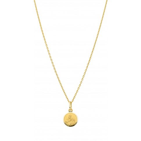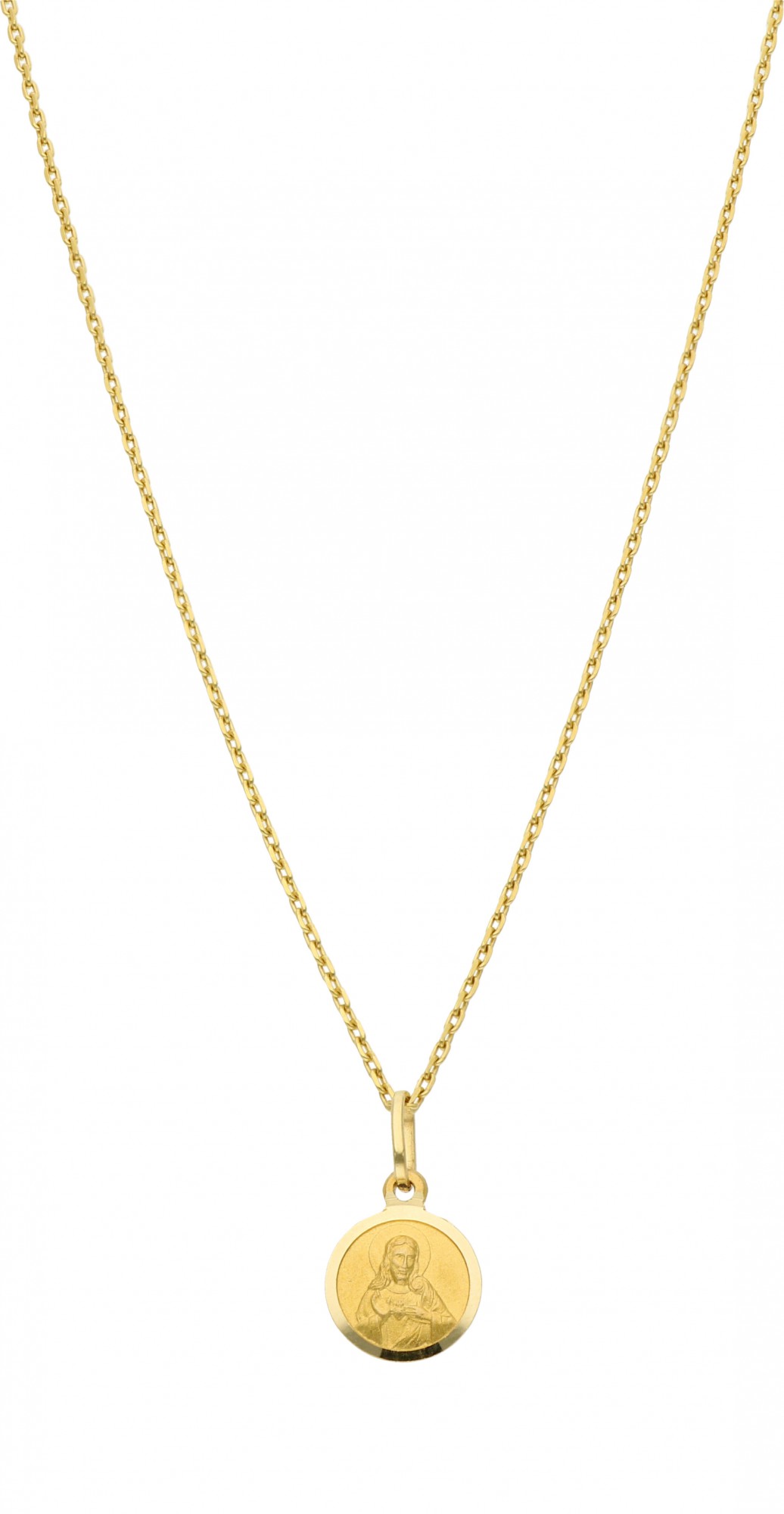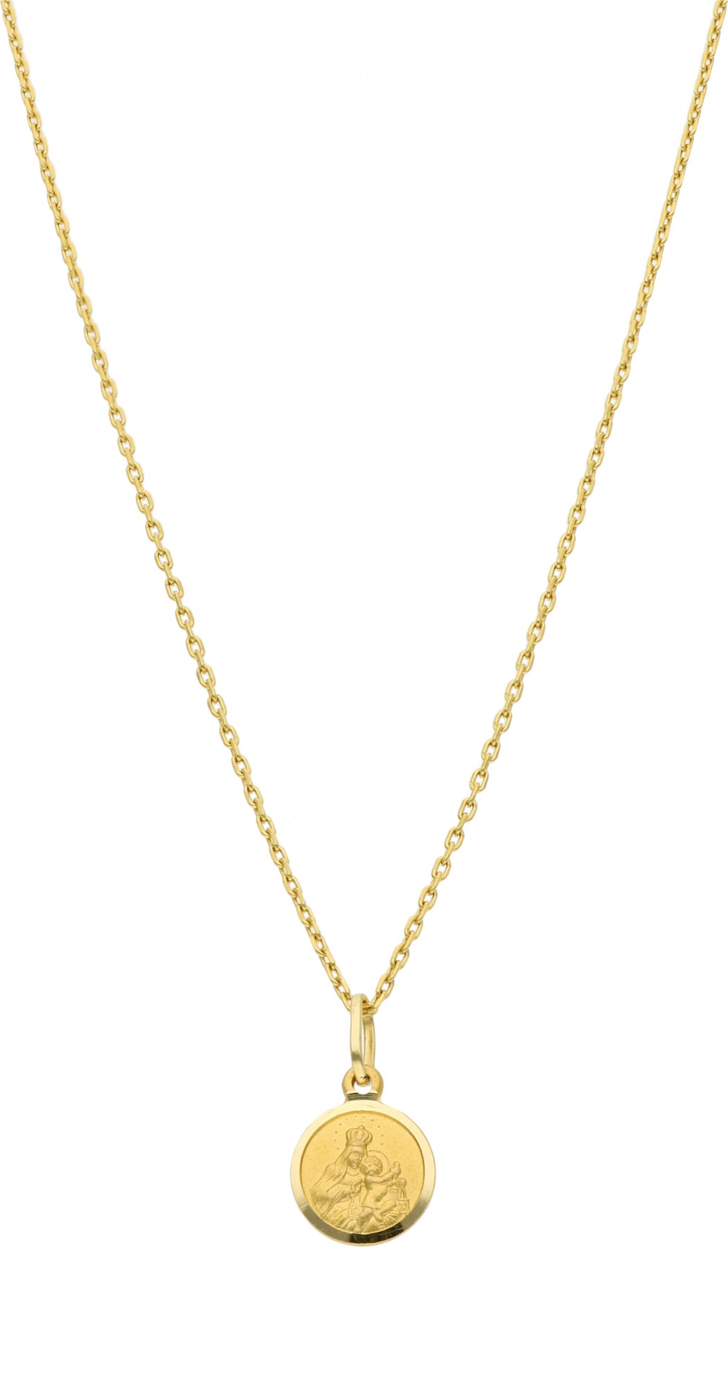 Medalik szkaplerzny wykonany z żółtego złota posiada wizerunek Matki Boskiej z jednej strony i wizerunek Jezusa Chrystusa z drugiej. Niewielka zawieszka to subtelny, wszechstronny symbol wyznawanych wartości, który może towarzyszyć swojemu właścicielowi lub właścicielce każdego dnia. Jest także wspaniałym prezentem z okazji chrztu, pierwszej komunii lub bierzmowania.