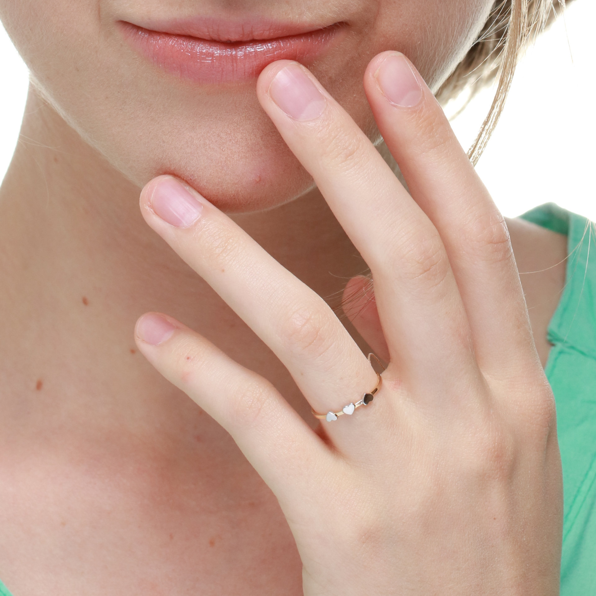 Minimalistyczny pierścionek z serduszkami to modny, niezwykle dziewczęcy dodatek na każdą okazję. Ta delikatna biżuteria z łatwością dopasuje się do różnych stylizacji. Ozdoba stanowi idealny prezent dla nastolatek i młodych kobiet, np. z okazji urodzin lub życiowego sukcesu.
