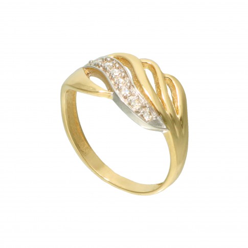 Efektowny pierścionek z żółtego złota przyciąga wzrok nietypowym wzorem. To propozycja dla eleganckich kobiet, które lubią się wyróżniać i wybierają niebanalne ozdoby. Biżuteria doskonale dopasuje się do eleganckich oraz szykownych stylizacji.