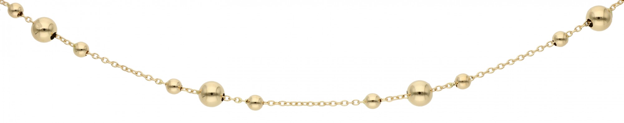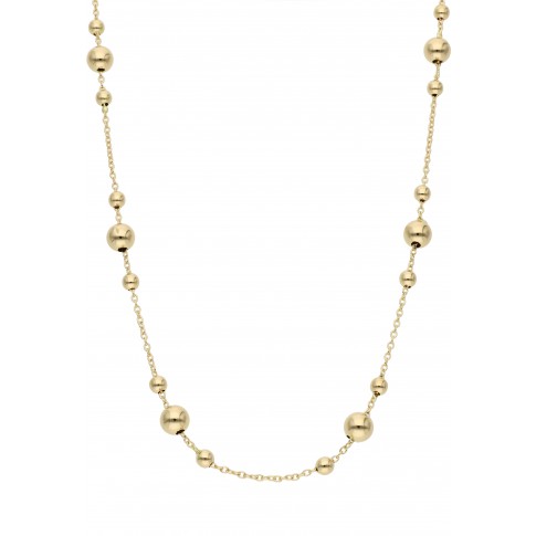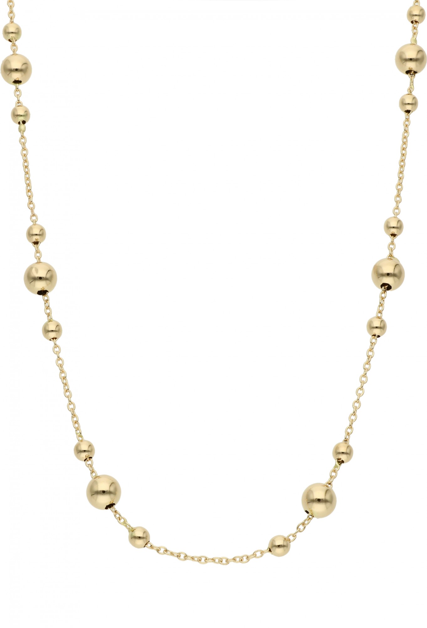Naszyjnik z koralikami różnej wielkości, w całości wykonany z żółtego złota, to nieszablonowa ozdoba z wyższej półki. Efektowny, ale bezpretensjonalny projekt podkreśla klasę i styl. Z łatwością dopasujesz nasz naszyjnik zarówno do eleganckich stylizacji, jak i codziennych outfitów, którym chcesz dodać charakteru.