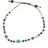 Bransoletka łączy w sobie naturalne kamienie i precyzyjnie dobrane koraliki, tworząc elegancką, a jednocześnie codzienną biżuterię. Centralnym punktem jest większy, jasnoniebieski kamień otoczony ciemniejszymi odcieniami błękitu oraz złotymi akcentami, które dodają całości subtelnego blasku.