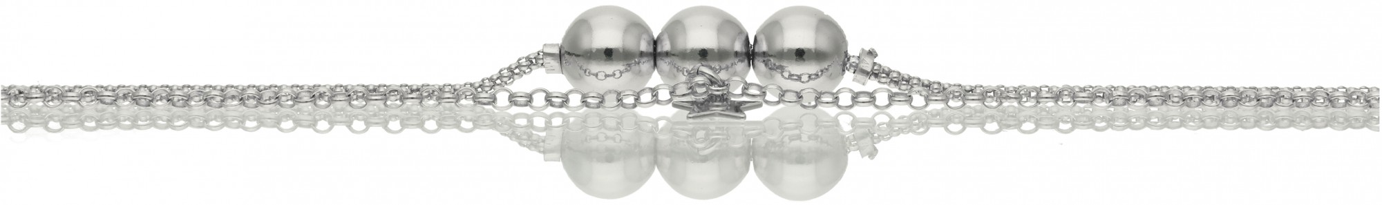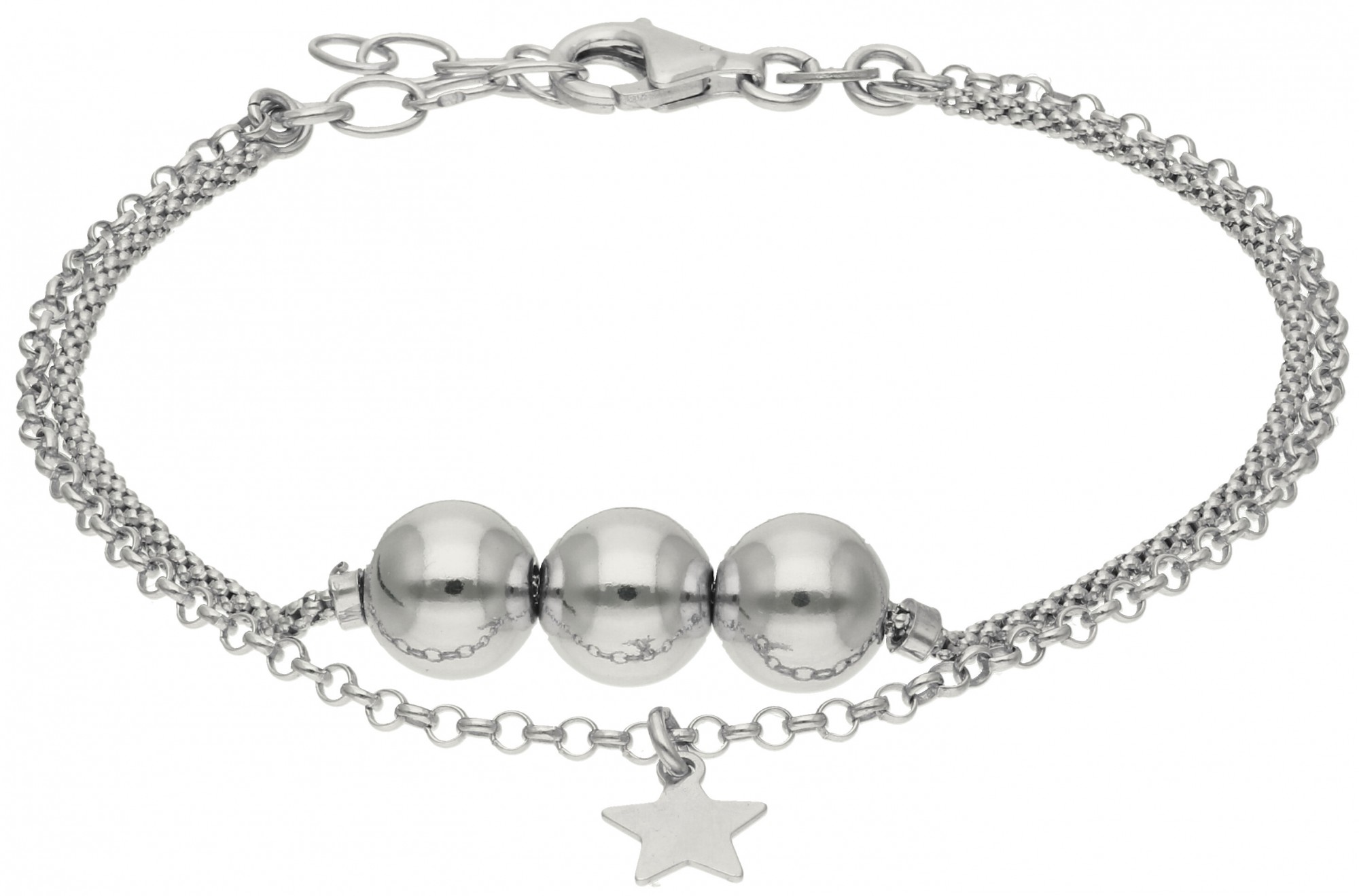 Srebrna bransoletka z kulkami i przywieszką to propozycja dla kobiet, które cenią nowoczesne dodatki. Efektowna biżuteria będzie atrakcyjnym dodatkiem do codziennych stylizacji i nieszablonowym uzupełnieniem eleganckich outfitów, którym chcesz dodać pazura i werwy. Bransoletka przyciąga wzrok i znakomicie podkreśla hybrydowy manicure!