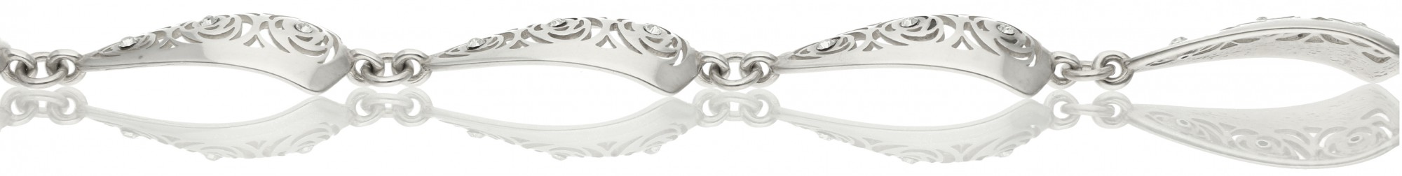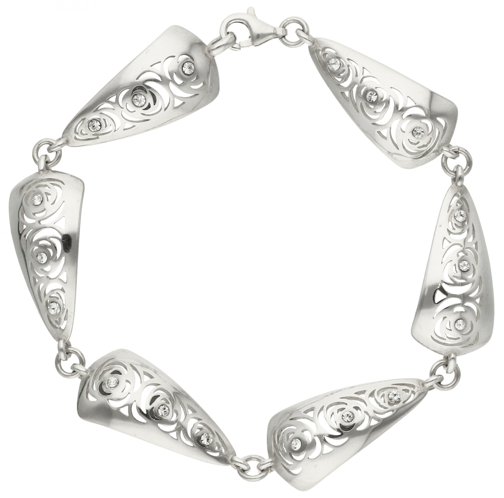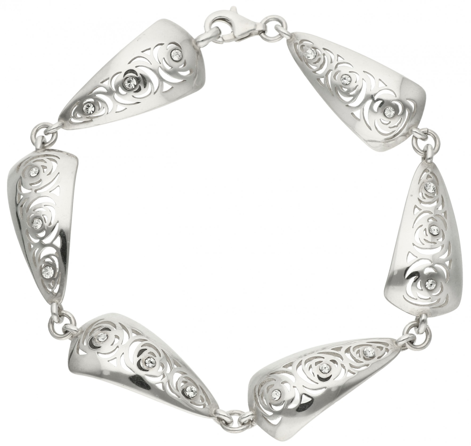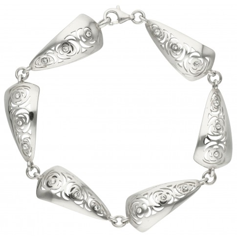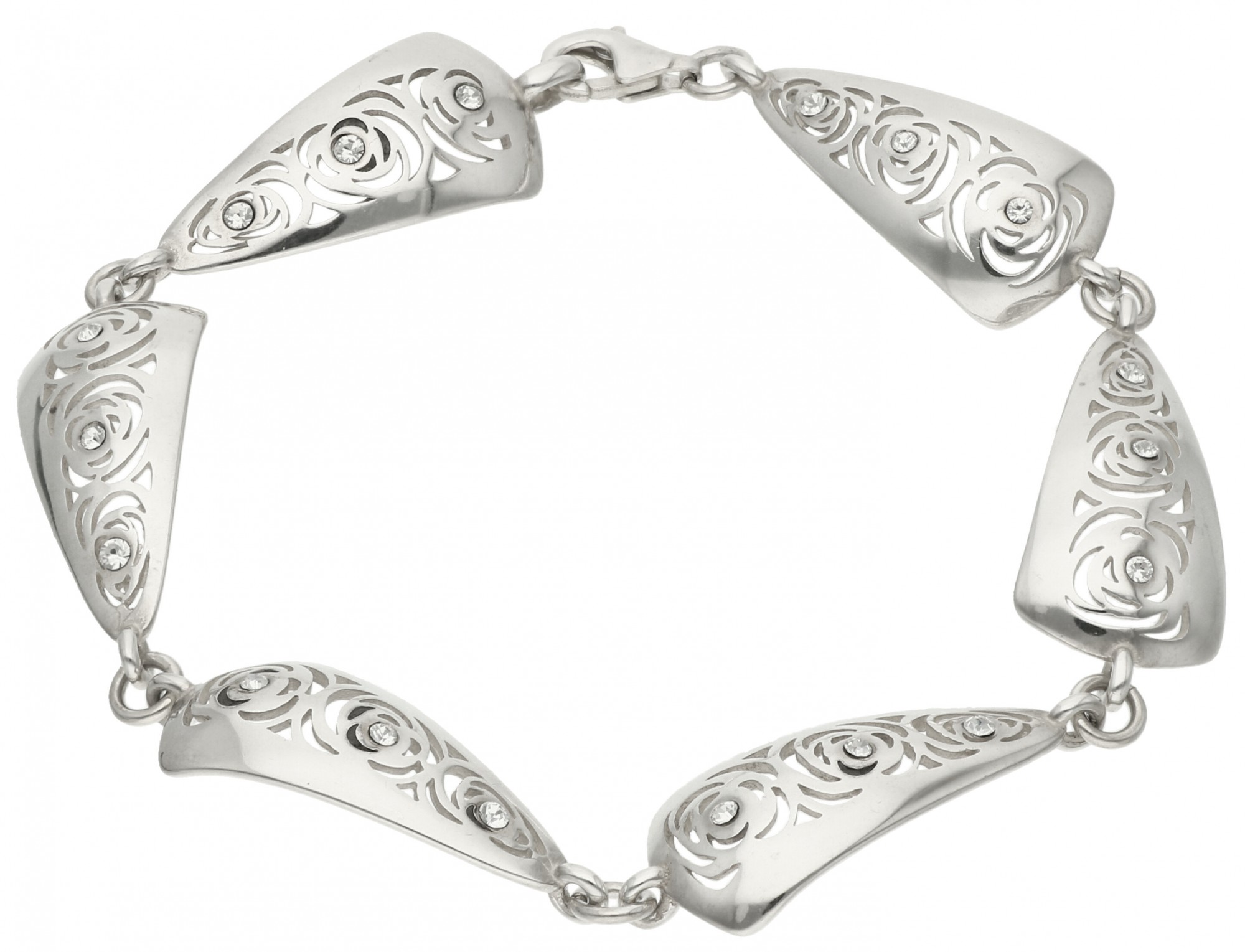 Srebrna bransoletka złożona z ażurowych modułów to oryginalny, wyrazisty dodatek dla kobiet, które mają swój styl i nie boją się go podkreślać. Efektowna ozdoba odmieni każdą stylizację oraz podkreśli jej charakter. Doskonale komponuje się z innymi srebrnymi dodatkami, tworząc wyrazistą, barokową kompozycję.