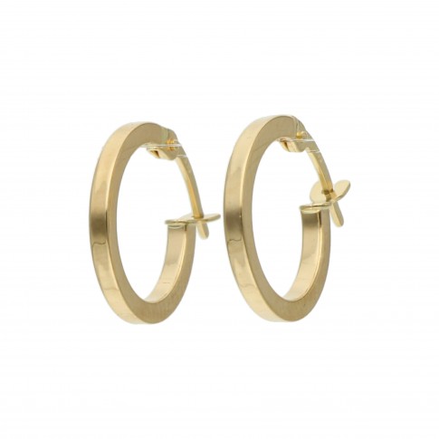 Wyraziste kolczyki - koła o prostokątnym przekroju - to elegancka ozdoba dla kobiet, które lubią biżuterię wysokiej jakości. Żółte złoto pięknie doda blasku stylizacjom eleganckim, nowoczesnym, minimalistycznym lub kreatywnym, np. kreowanym na look vintage, glamour czy rockowy. Koła na wygodnym zapięciu zaskoczą Cię swoją wszechstronnością!
