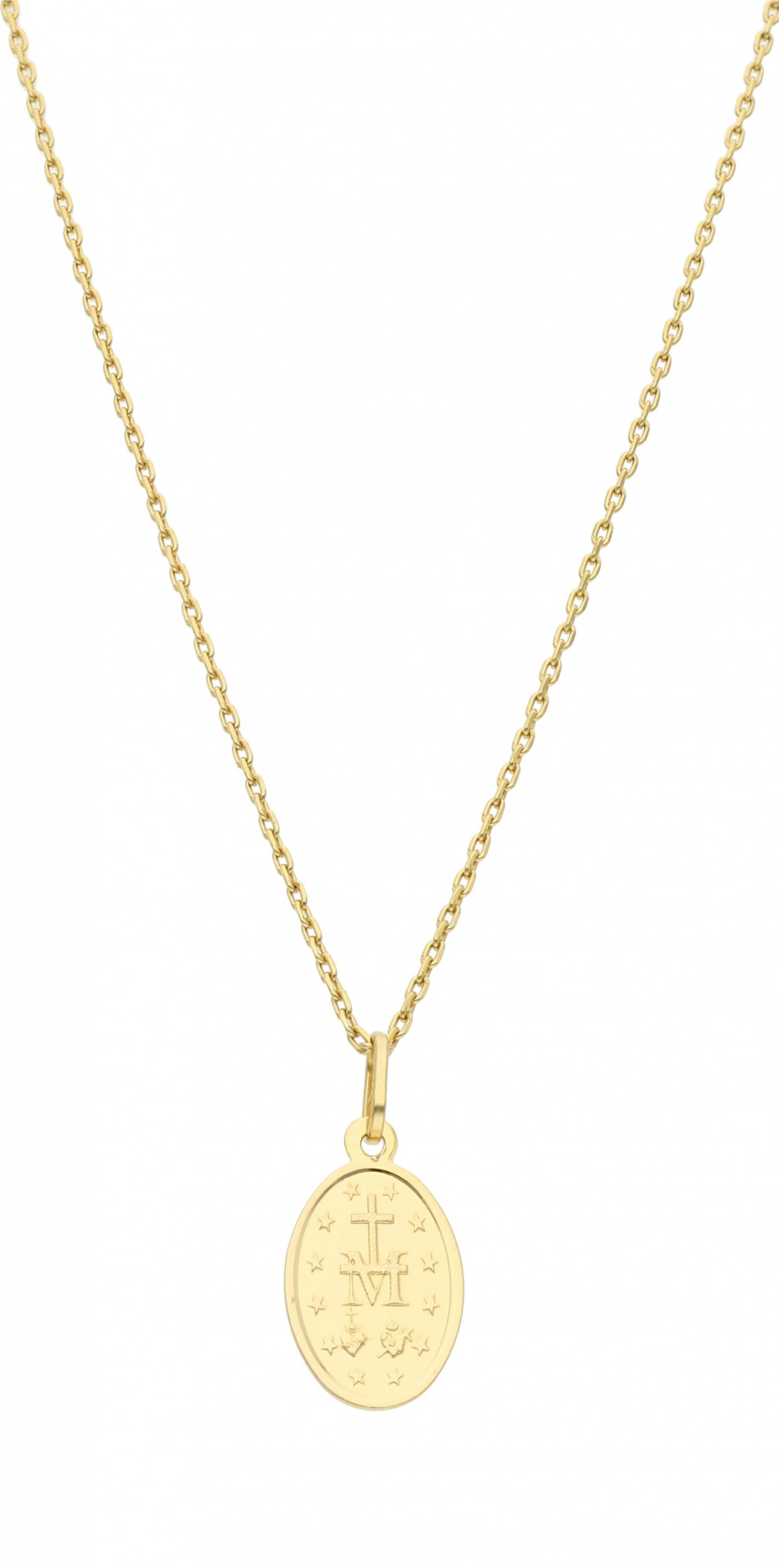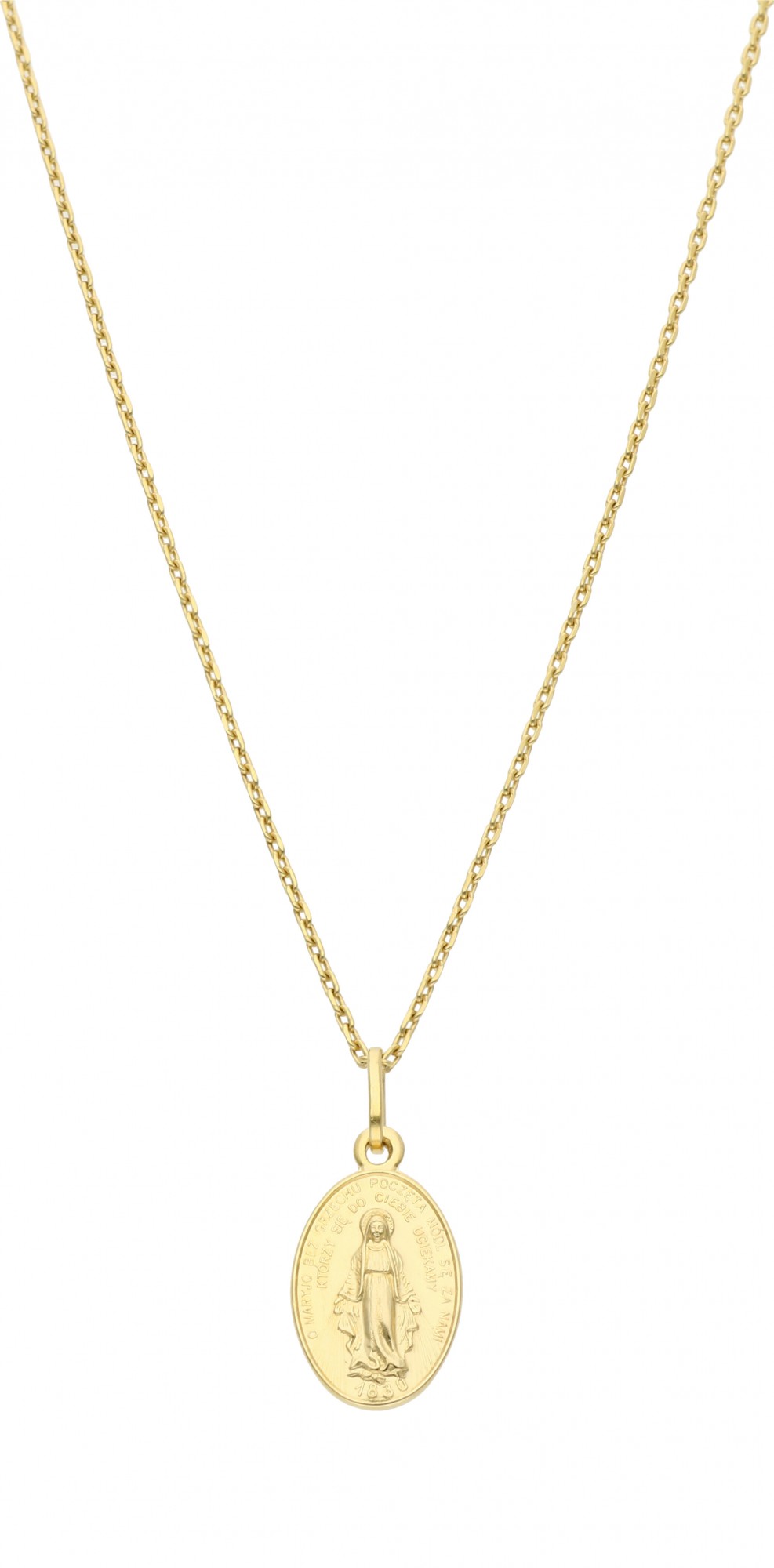 Cudowny medalik, w całości wykonany z żółtego złota, to niezwykle subtelna ozdoba, którą można nosić na co dzień, jako życiowy drogowskaz i symbol wyznawanych wartości. To także znakomity prezent na chrzest, pierwszą komunię lub bierzmowanie.