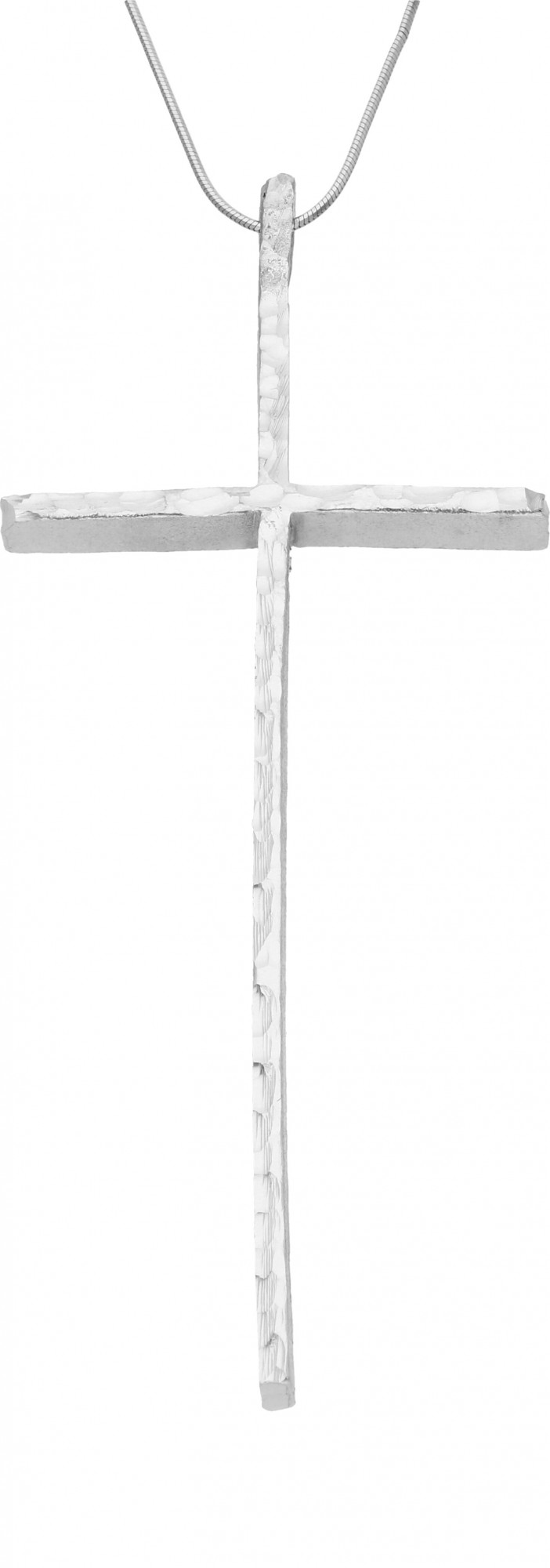 Szukasz niebanalnej ozdoby? Prosty, dość duży (7,8 cm długości) krzyżyk to piękny symbol wiary lub niepowtarzalny dodatek. Doskonale prezentuje się na dłuższym łańcuszku lub rzemyku i rewelacyjnie uzupełnia stylizacje etno, retro oraz minimalistyczne.