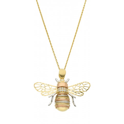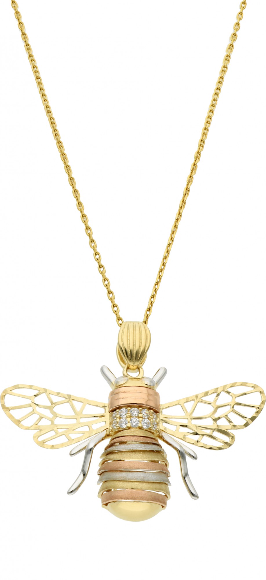 Zawieszka z owadem wykonanym z trzech kolorów złota przyciąga wzrok oryginalnym projektem i kunsztownym wykonaniem. Połączenie trzech barw i przezroczystych cyrkonii tworzy piękną, niepowtarzalną kompozycję. Jeśli cenisz oryginalne dodatki z wyższej półki i lubisz zachwycać się każdym szczegółem wyjątkowej ozdoby, złota mucha będzie świetnym, niebanalnym wyborem.