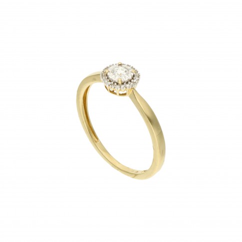 Klasyczny złoty pierścionek z brylantem