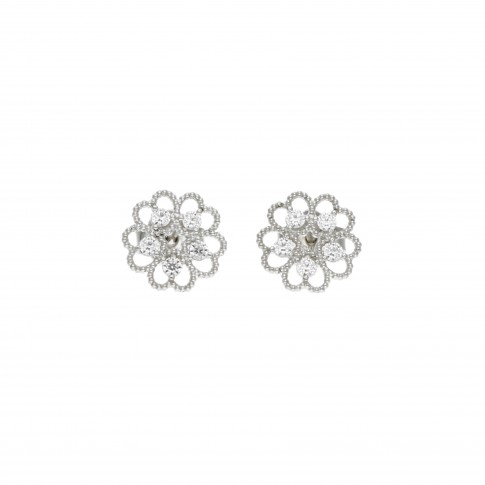 Kolczyki z motywem kwiatków to niezwykle dziewczęca ozdoba. Ten projekt jest szczególny: białe złoto podkreśla blask cyrkonii, a ażurowa budowa biżuterii sprawia, że jest ona bardzo subtelna. To doskonały dodatek dla dziewczyn i kobiet w każdym wieku. Małe, skromne kolczyki są gustownym dodatkiem do wielu różnych stylizacji.