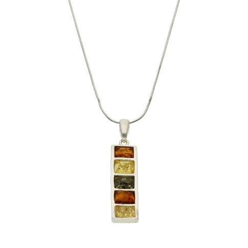 Prosta, geometryczna zawieszka z bursztynem w trzech odcieniach stanowi gustowny dodatek, którym uzupełnisz codzienne, nowoczesne i minimalistyczne stylizacje. Jest niezawodną biżuterią do eleganckich i formalnych outfitów, jeśli nie chcesz rezygnować ze swojego stylu.