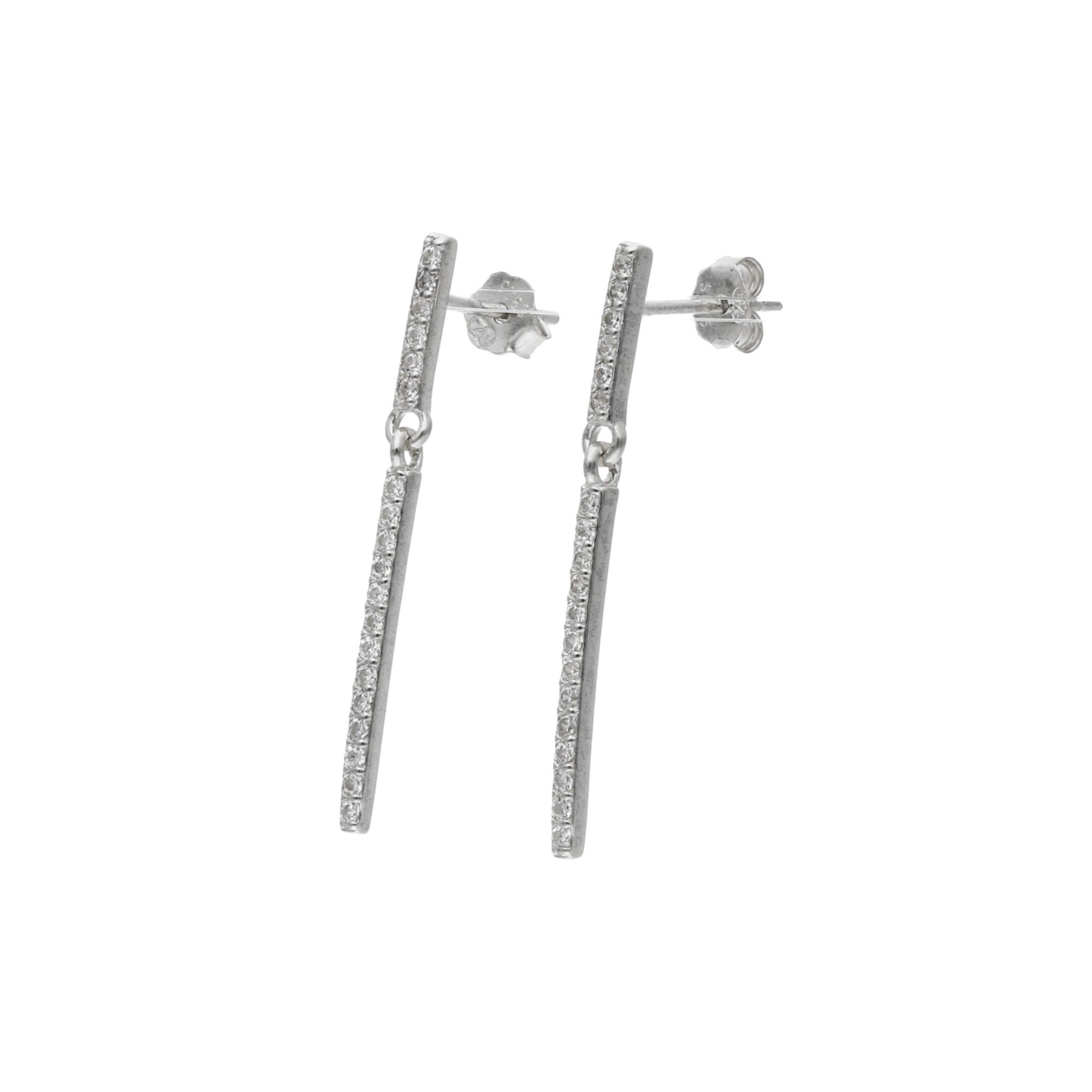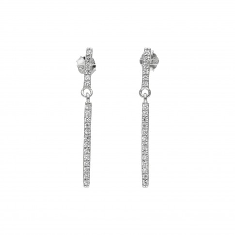 Podłużne kolczyki ozdobione cyrkoniami to niezwykle stylowa ozdoba, która doda klasy każdej kreacji. Cyrkonie pięknie lśnią przy każdym ruchu, a podłużny kształt optycznie wysmukla rysy twarzy. Zapięcie typu sztyft zapewnia wygodę noszenia. To wyjątkowy dodatek o nowoczesnym designie, który potrafi zachwycać!