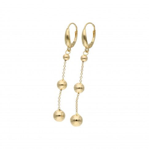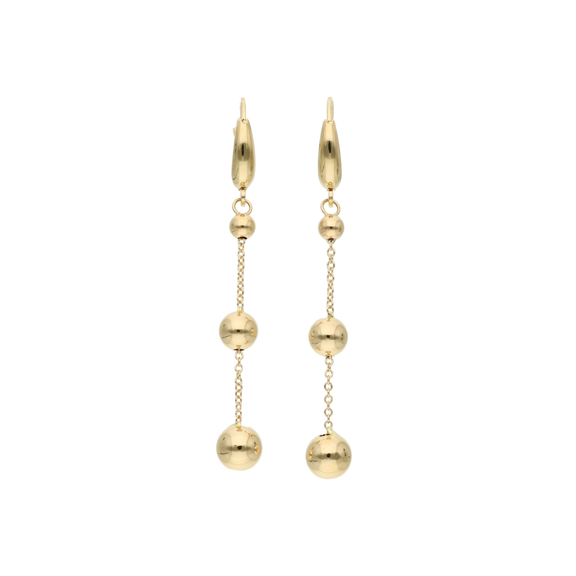 Wiszące kolczyki z delikatnymi kulkami z żółtego złota to piękna, subtelna biżuteria na każdą okazję. Znakomicie uzupełnią większość outfitów: zarówno klasyczne, jak i nowoczesne lub młodzieżowe. Są niezawodne w dodawaniu szyku i dziewczęcego wdzięku różnym stylizacjom.