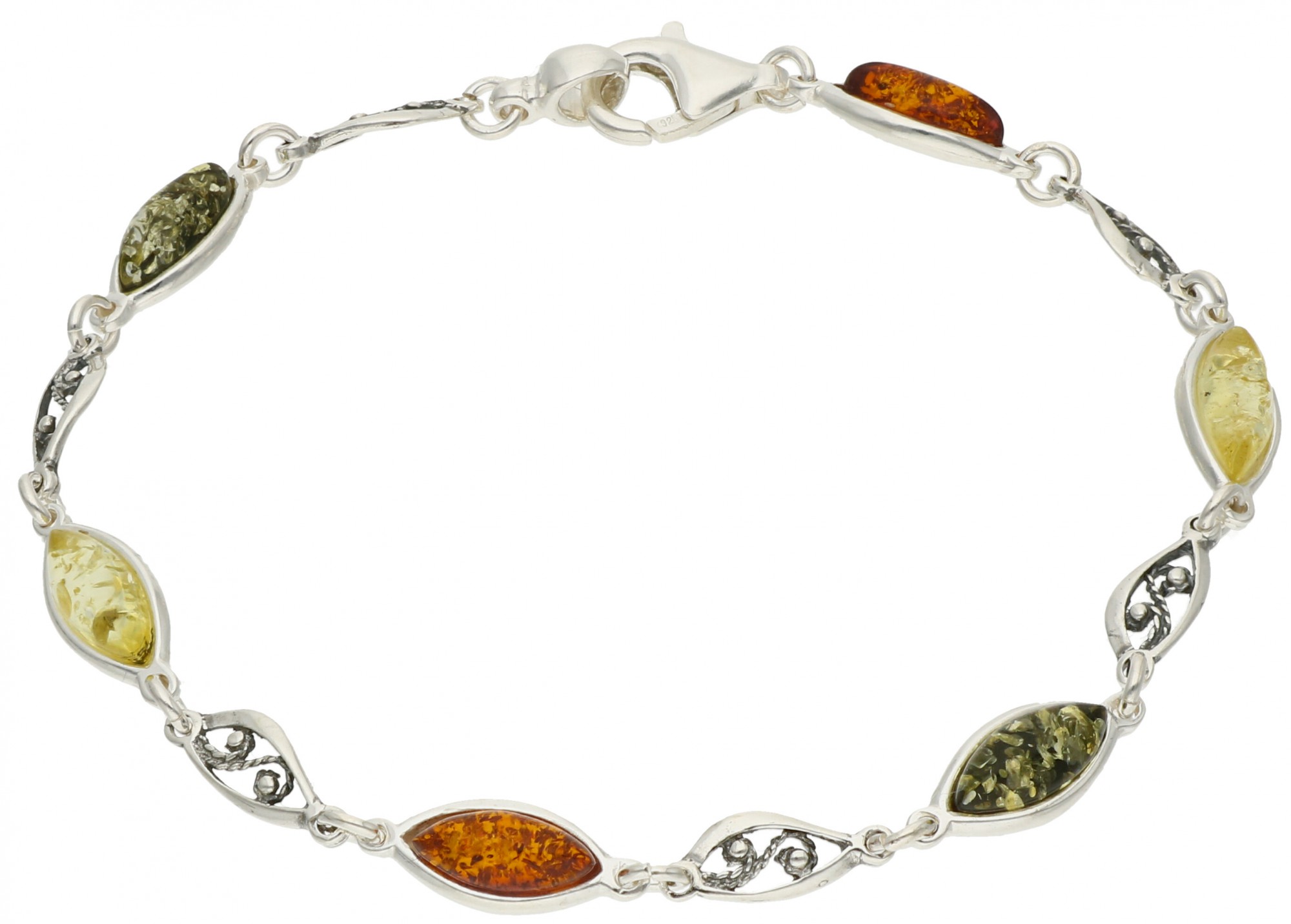 Efektowna bransoletka z bursztynami w trzech kolorach to biżuteria dla kobiet, które cenią wyjątkowe dodatki. Subtelna i niecodzienna, z pewnością podbije Twoje serce, gdy zobaczysz ją na żywo i założysz na nadgarstek. Przekonaj się!