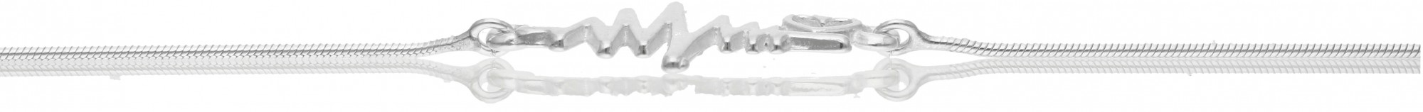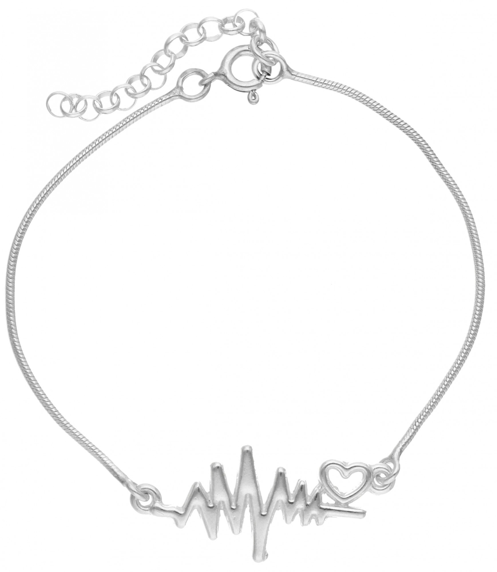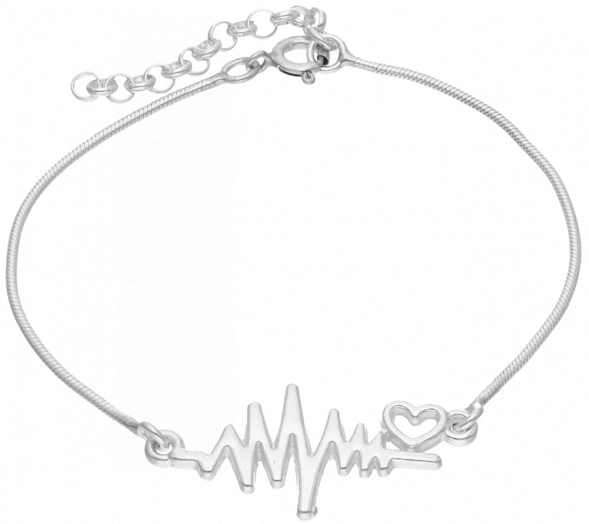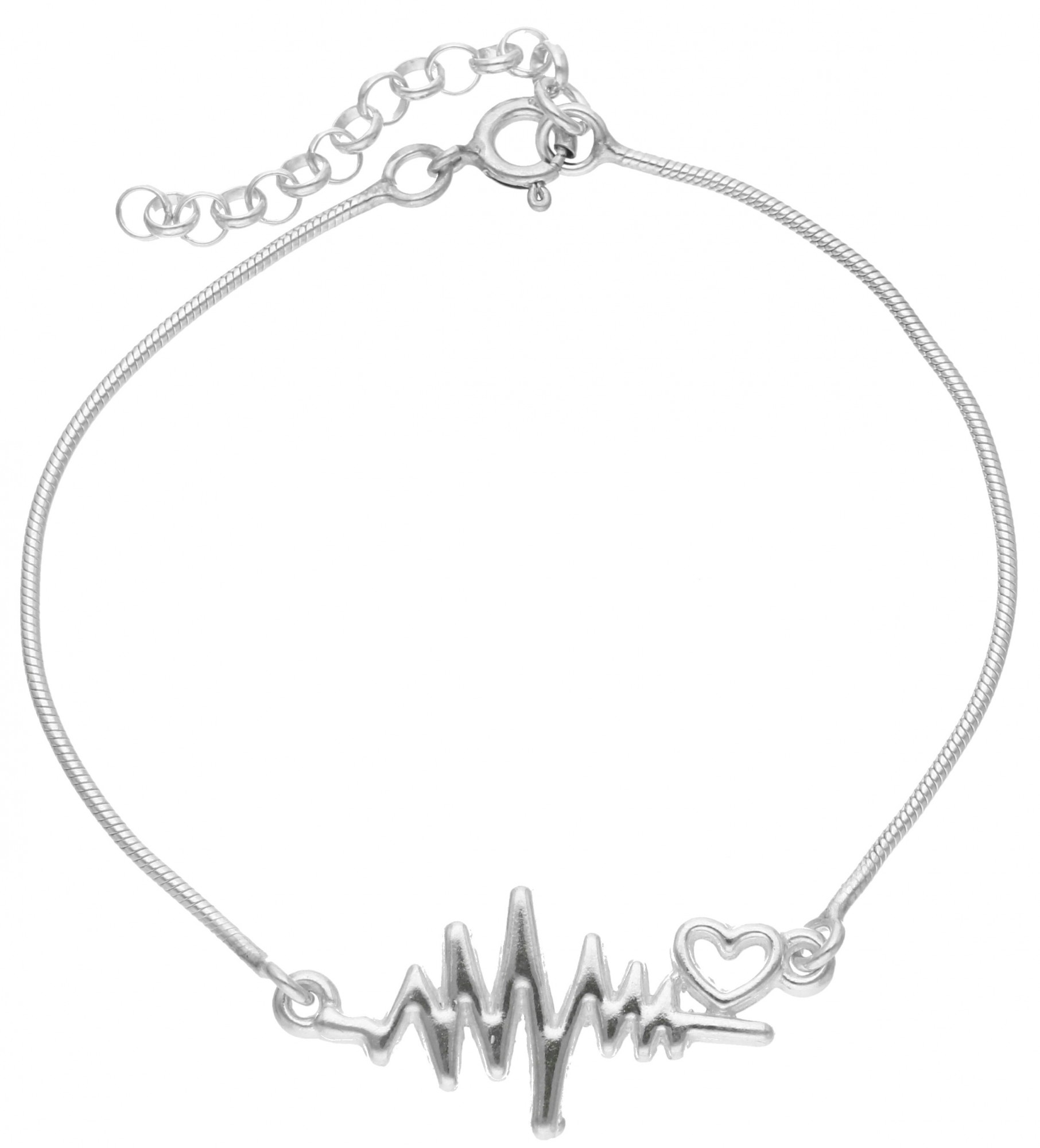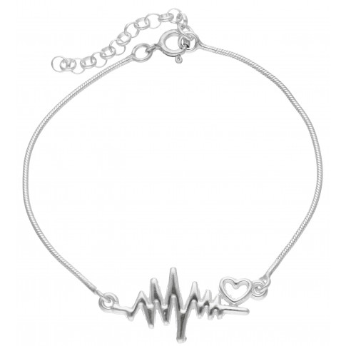 Modna bransoletka została w całości wykonana ze srebra. Ozdoba zdecydowanie zwraca uwagę wyjątkowym motywem zapisu EKG i serduszkiem. Jest idealnym wyborem dla kobiet, które chętnie śledzą najnowsze trendy i poszukują efektownego dodatku. Bransoletka ma regulowane zapięcie, dzięki czemu z łatwością można dopasować ją do nadgarstka.