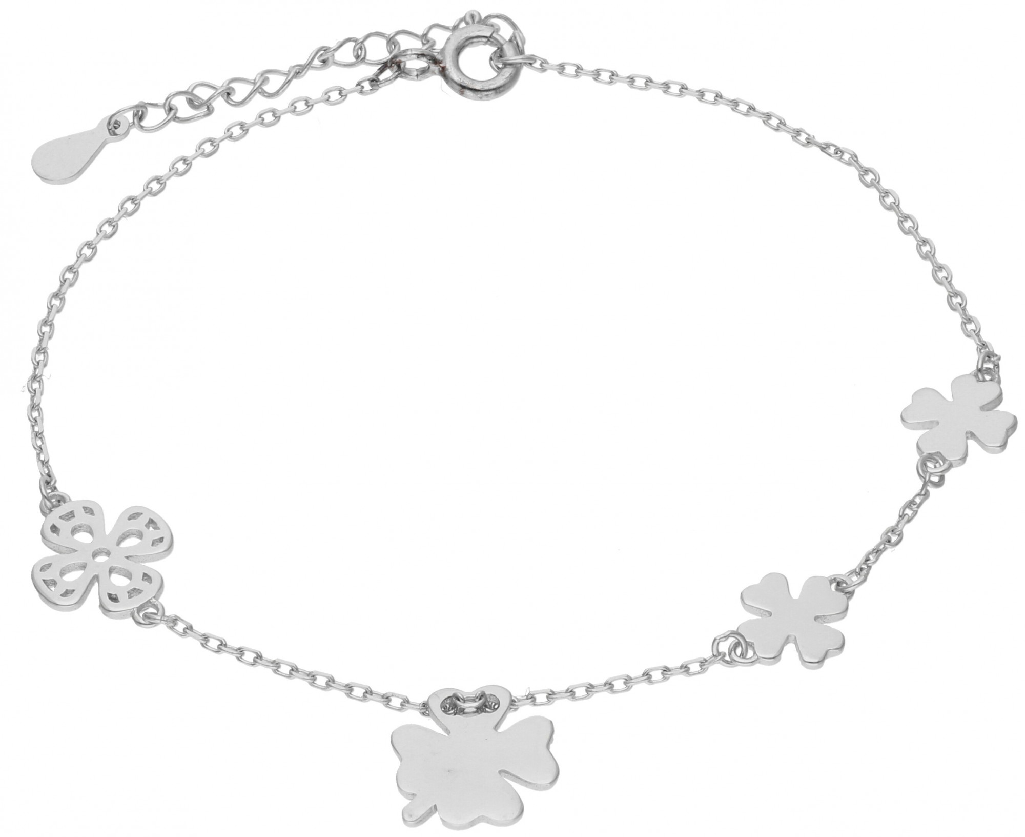 Cztery czterolistne koniczynki to poczwórny talizman szczęścia! Czy możemy uznać, że to aż 400% na powodzenie w realizacji celów i spełnianiu marzeń? Bransoletka celebrytka z koniczynkami została wykonana ze srebra wysokiej jakości (próba 925, czyli najwyższa używana w jubilerstwie). Jest urocza, niezwykle subtelna i bez problemu dopasowuje się do różnych stylizacji, więc może towarzyszyć Ci tak często, jak zechcesz. To także wspaniały pomysł na prezent!