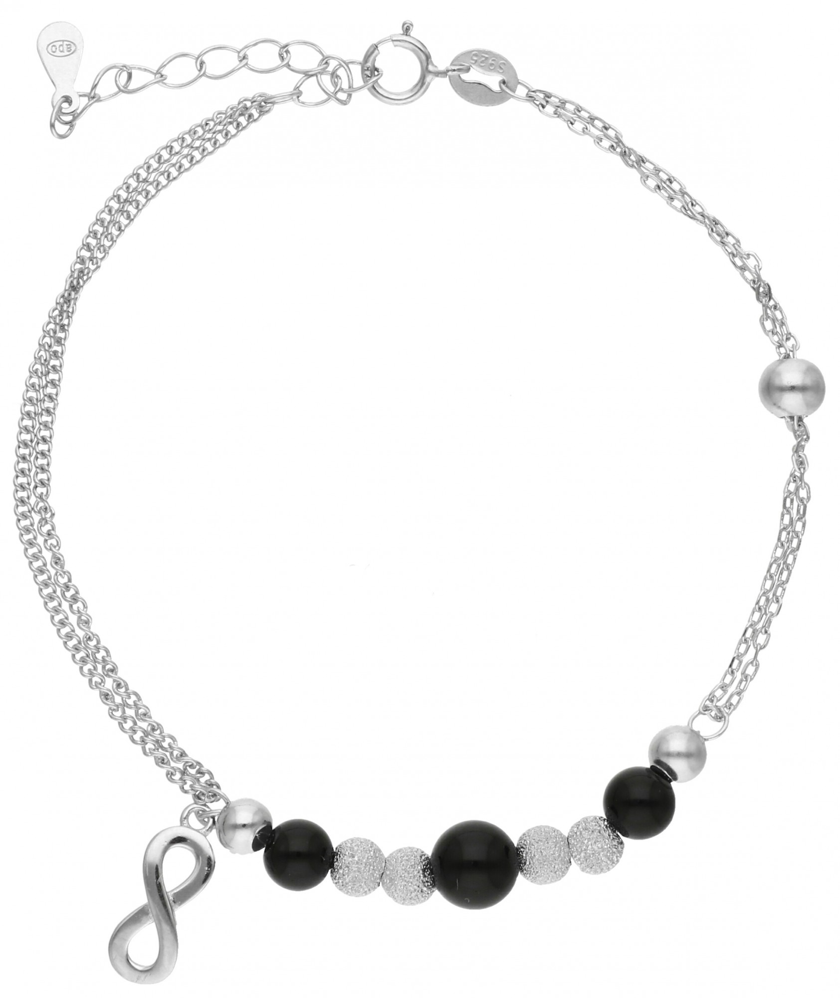 Modna bransoletka ze znakiem nieskończoności i koralikami to idealny wybór do codziennych, minimalistycznych, nowoczesnych oraz eleganckich stylizacji. Ozdoba idealnie wpisuje się w najnowsze trendy, a połączenie czerni i srebra wysokiej jakości (próba 925) prezentuje się niezwykle gustownie. Tę biżuterię możesz założyć zarówno do pracy, jak i na spotkanie z przyjaciółmi. Sprawdzi się w każdej sytuacji!