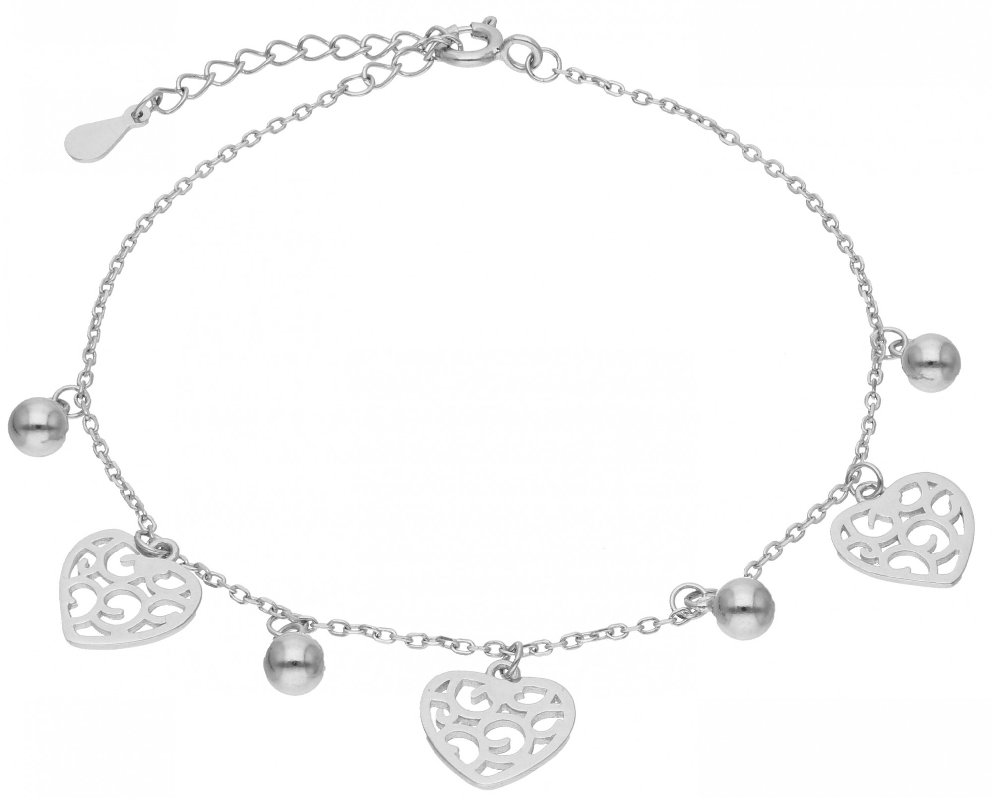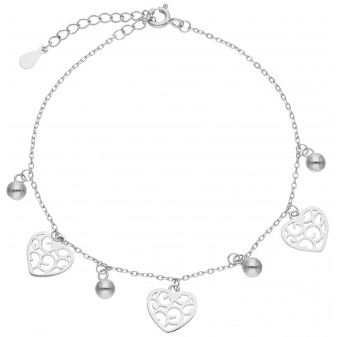 Srebrna bransoleta z przywieszkami w kształcie serca