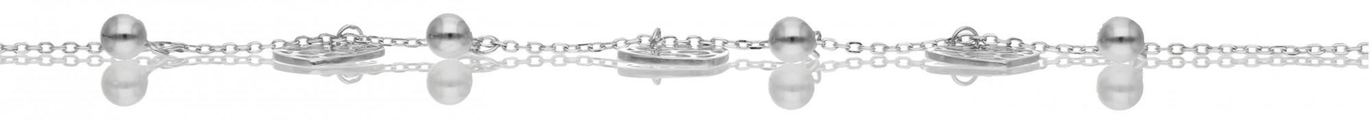 Delikatna bransoletka z ażurowymi przywieszkami i srebrnymi koralikami to oryginalny dodatek dla kobiet, które cenią nowoczesną biżuterię. Ozdoba doskonale wpisuje się w pełen wakacyjnego luzu styl boho, stanowi także oryginalny dodatek do codziennych stylizacji. Regulowane zapięcie ułatwi dopasowanie ozdoby do nadgarstka.