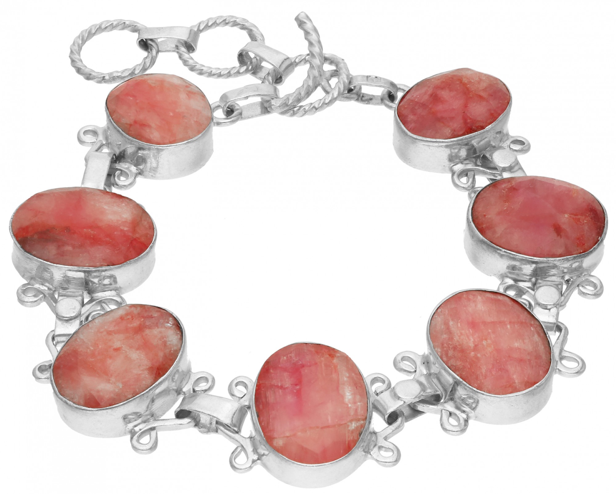 Piękna bransoleta z rubinami oprawionymi w srebro zwraca uwagę kunsztownym wykonaniem. Głęboka barwa kamieni naturalnych doskonale uzupełni eleganckie i codzienne stylizacje, podkreślając wyjątkowy styl swojej właścicielki. Stopniowane zapięcie ułatwia dopasowanie biżuterii do nadgarstka.