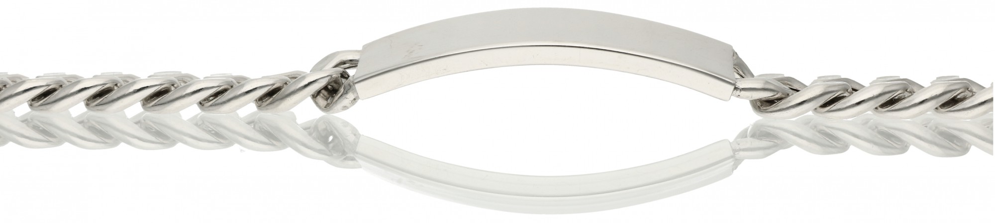 Klasyczna srebrna bransoletka typu pancerka to ozdoba, która od lat pozostaje w modzie. Blaszka wkomponowana w splot to idealne miejsce na grawer ważnej daty, imienia lub życiowego motta. Bransoletka została wykonana z dbałością o każdy szczegół, a wygodne, estetyczne zapięcie zapobiega przypadkowemu zgubieniu ozdoby.
