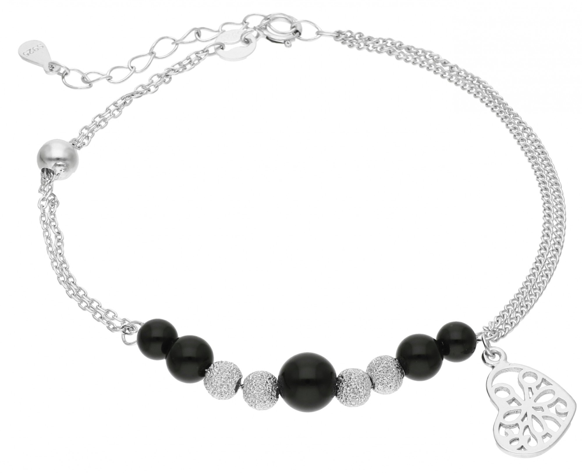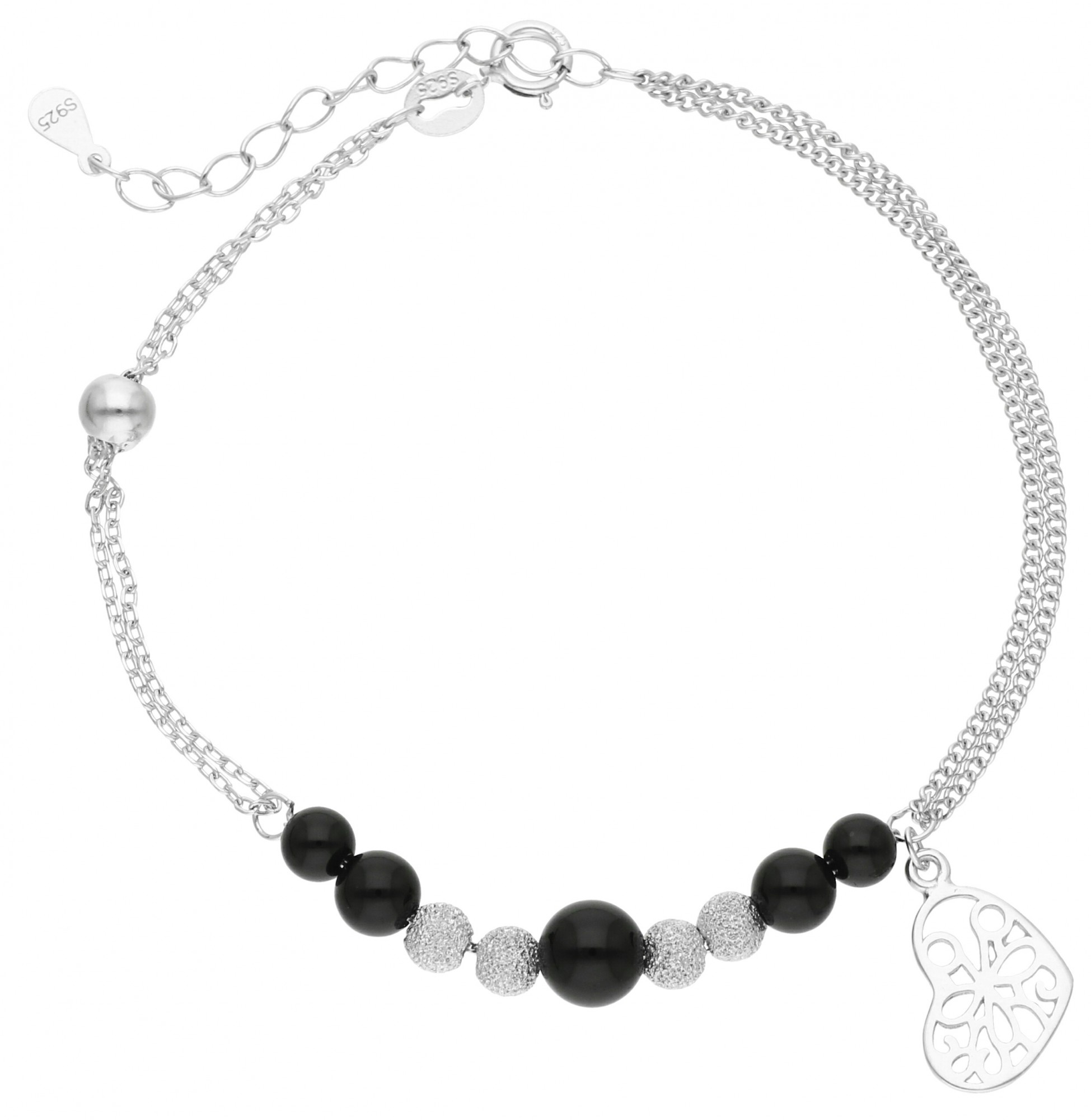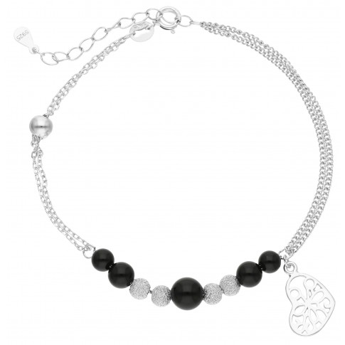 Delikatna, srebrno-czarna bransoletka z ażurowym serduszkiem to rewelacyjny dodatek na każdą okazję. Motyw serca przypomni Ci o bliskich osobach, a srebro doda klasy i blasku Twoim stylizacjom. Stopniowane zapięcie ułatwia idealne dopasowanie biżuterii do nadgarstka, a uniwersalny design pasuje do każdej stylizacji. Warto mieć tak wszechstronną ozdobę w swojej kolekcji!