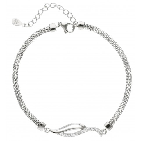 Efektowna, srebrna bransoletka to elegancki dodatek do każdej stylizacji. Znakomicie sprawdzi się jako gustowny element w codziennych outfitach, a także jako biżuteria do pracy lub element eleganckiej kreacji. Motyw ażurowej fali został ozdobiony bezbarwnymi cyrkoniami, dzięki czemu bransoletka pięknie lśni zarówno w sztucznym, jak i naturalnym świetle. Regulowane zapięcie ułatwia idealne dopasowanie biżuterii.