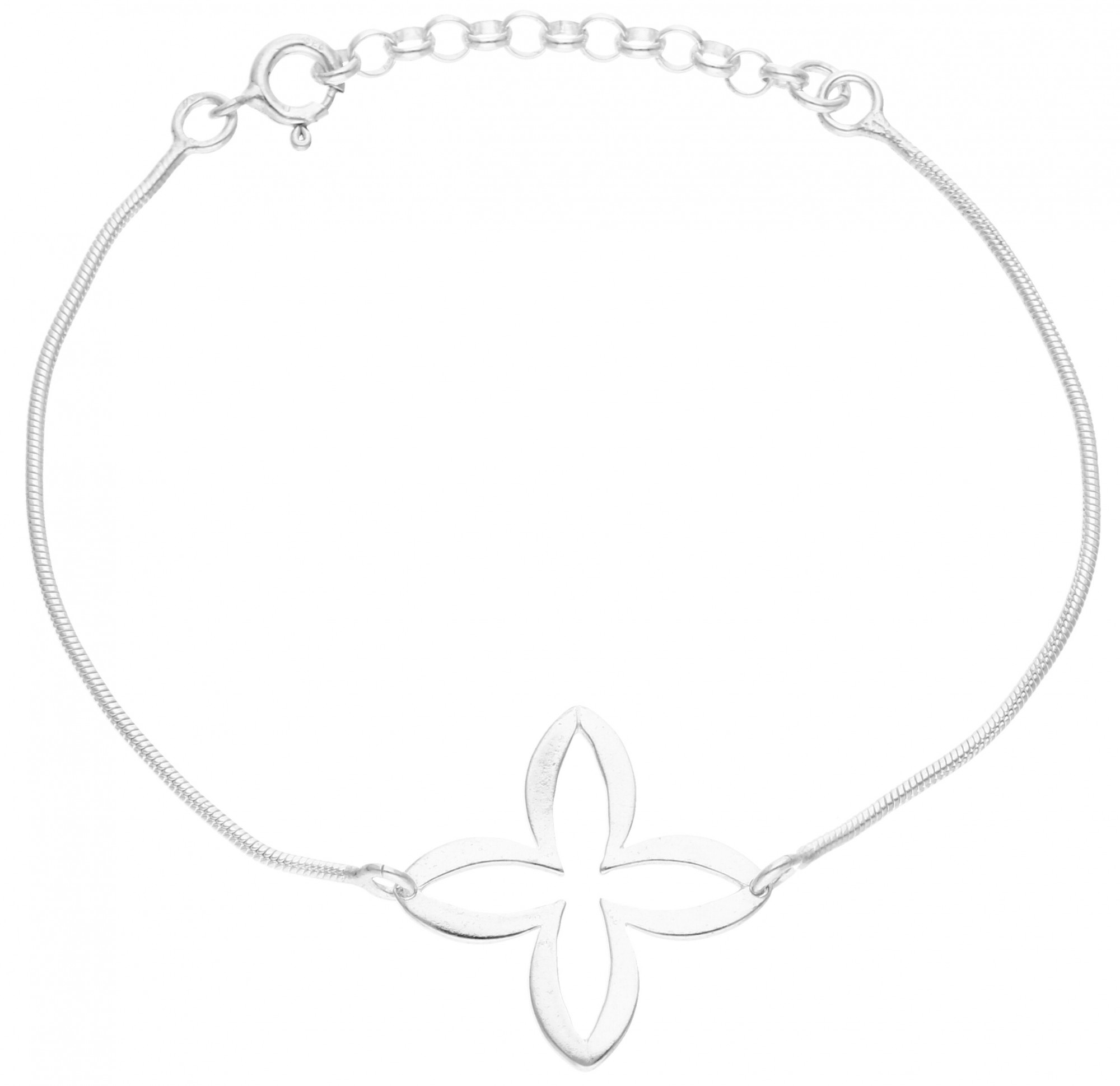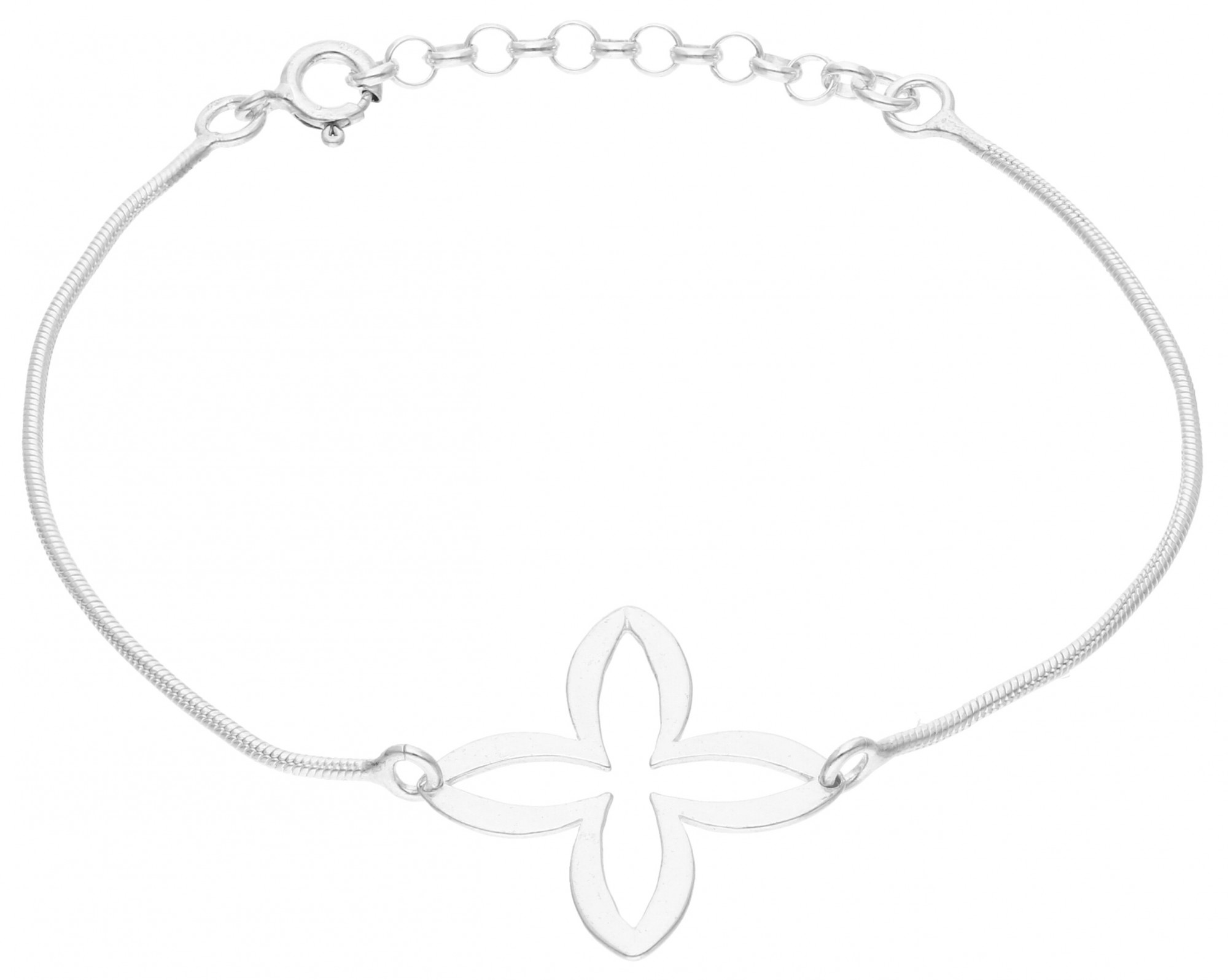 Efektowna bransoletka ze srebra to biżuteria, która z pewnością przyciągnie spojrzenia i doskonale dopasuje się do Twojego stylu! Zwróć uwagę na ażurowy, czteroramienny akcent - inspiracją dla niego był motyw ze słynnej tkaniny Louis Vuitton. Cienki łańcuszek typu linka sprawia, że biżuterię wygodnie się nosi, a regulowane zapięcie gwarantuje doskonałe dopasowanie do nadgarstka.