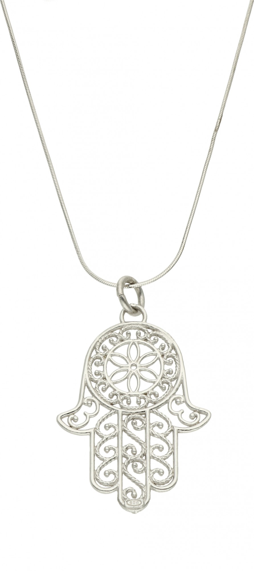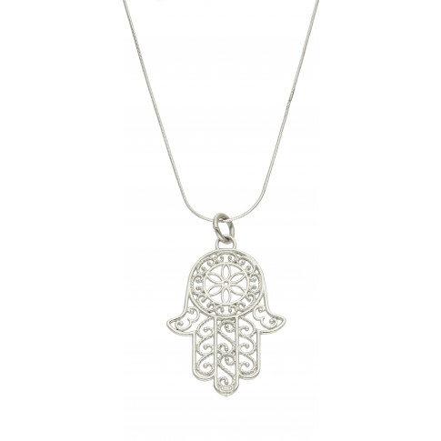 Ręka Fatimy to symbol znany na całym świecie, a jego korzenie tkwią głęboko w starożytności. Symbol miał chronić przed złem i był kojarzony z pozytywnymi wartościami, a z jego mocy chętnie korzystały przede wszystkim kobiety. Nasz wariant Ręki Fatimy to pięknie zdobiona, ażurowa zawieszka, która może towarzyszyć Ci tak często, jak zechcesz.