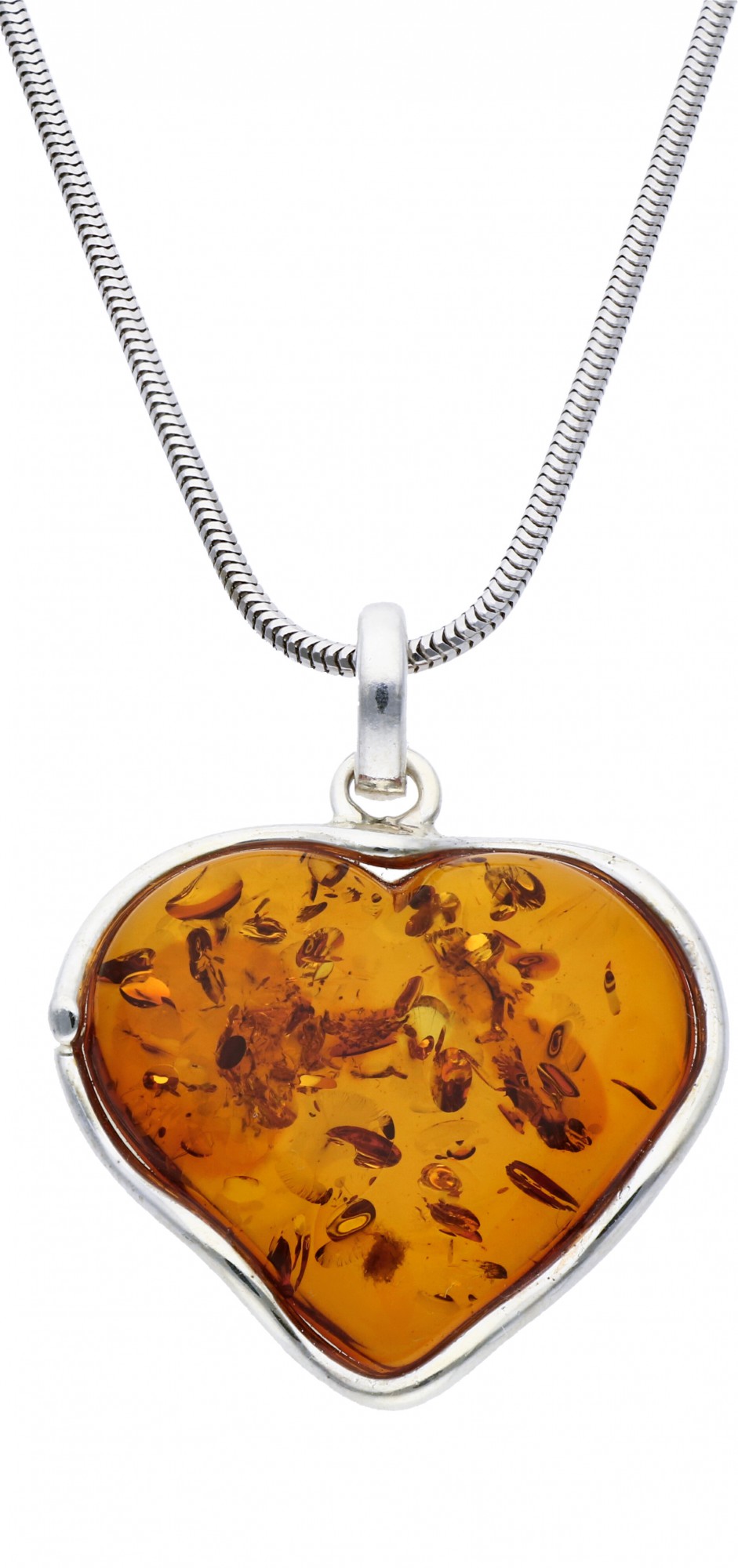 Srebrna zawieszka serce z bursztynem
