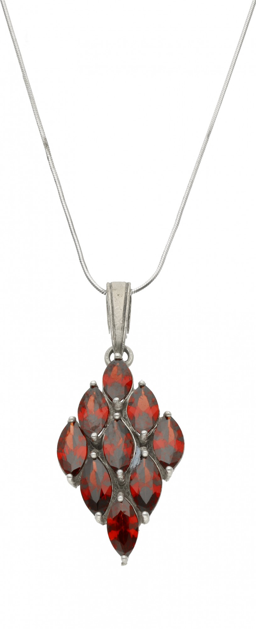 Srebrna zawieszka z czerwonymi cyrkoniami