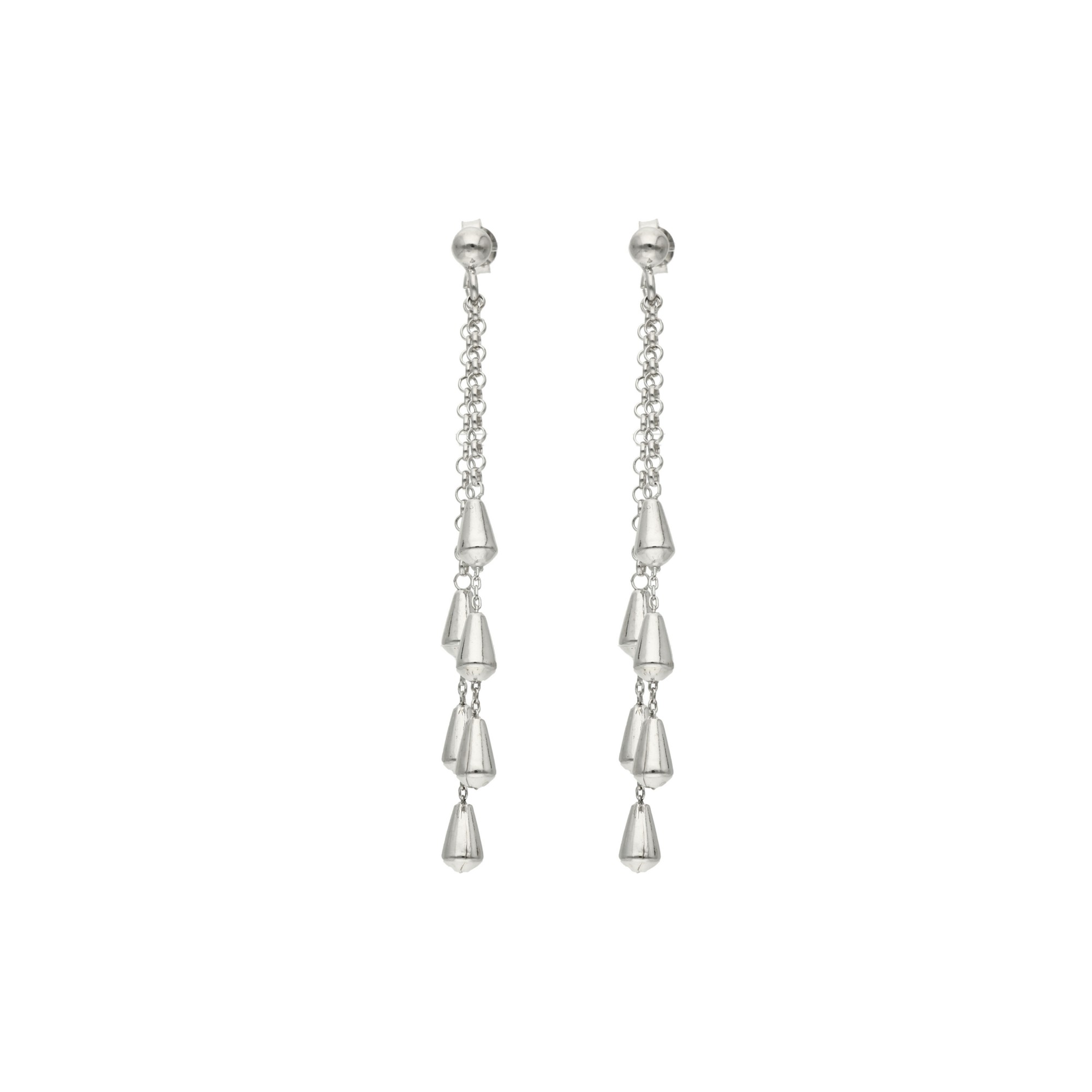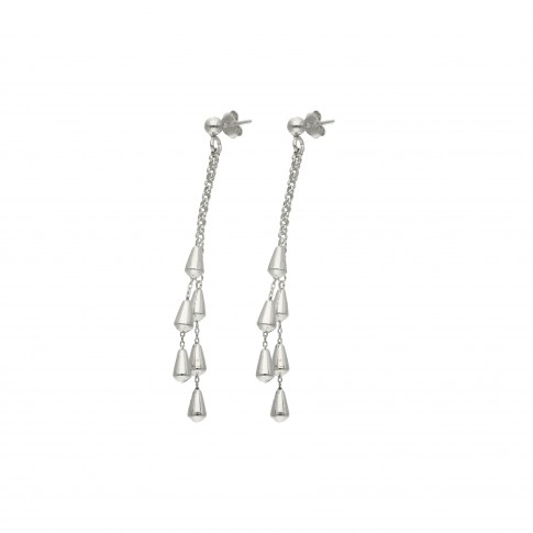 Urocza ozdoba z motywem dzwoneczków zawieszonych na srebrnych łańcuszkach, to świetny wybór dla kobiet, które lubią dłuższe kolczyki. Biżuteria posiada zapięcie typu sztyft, które zapewnia komfort noszenia i została wykonana ze srebra wysokiej jakości (próba 925, czyli najwyższa stosowana w jubilerstwie). Wybierając te kolczyki, zyskujesz niebanalny dodatek, który dopasuje się do różnych stylizacji i zwróci uwagę oryginalnym designem. Ozdoba świetnie podkreśla makijaż, fryzurę i... niepowtarzalny błysk w oku. Warto je mieć!