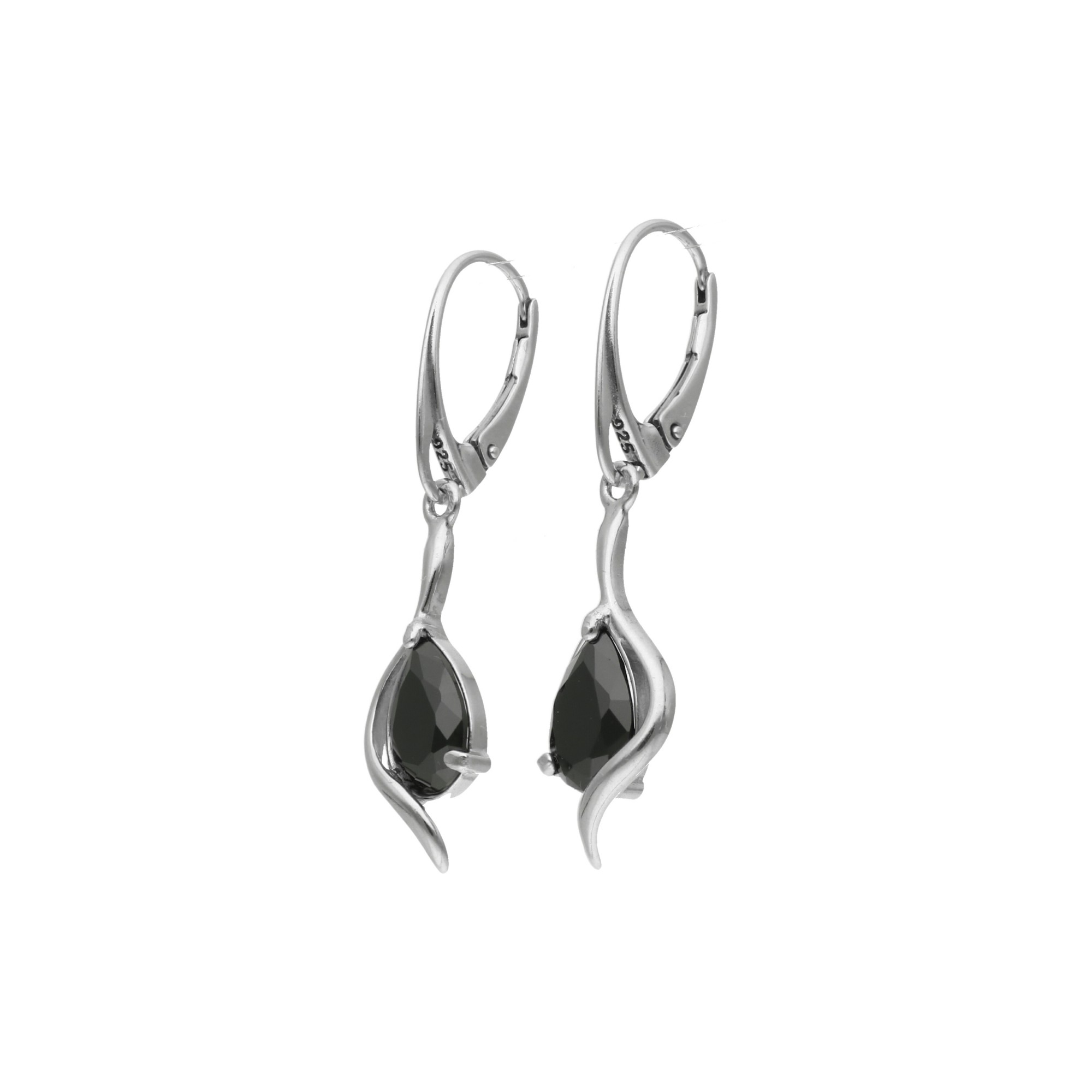 Wiszące kolczyki na angielskim zapięciu zwracają uwagę eleganckim połączeniem czerni i srebra. Są idealnym uzupełnieniem stylowych outfitów, w których chcesz prezentować się perfekcyjnie. To szykowny dodatek doskonały na ważne okazje, a podłużna forma kolczyków optycznie wysmukla twarz i wydłuża szyję.