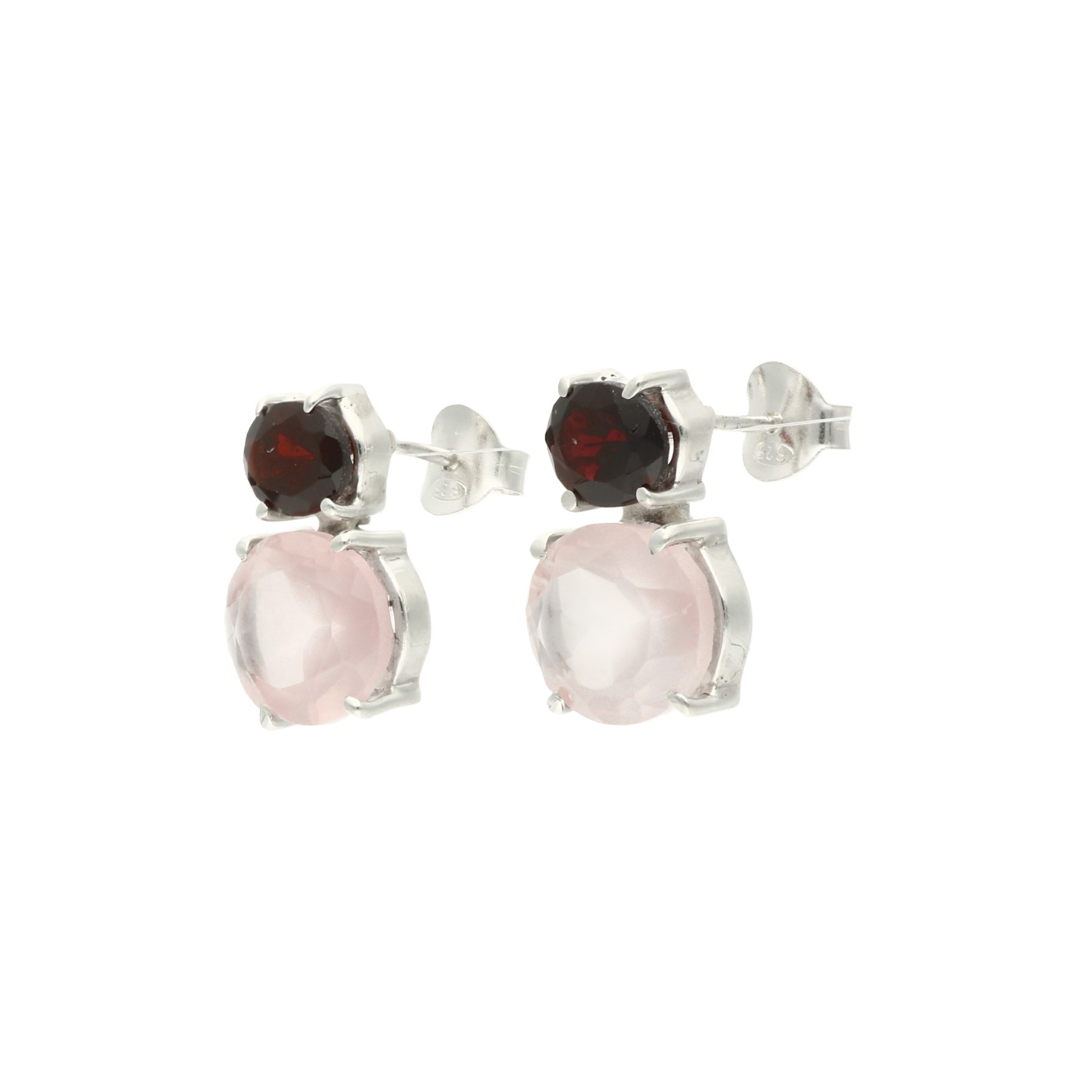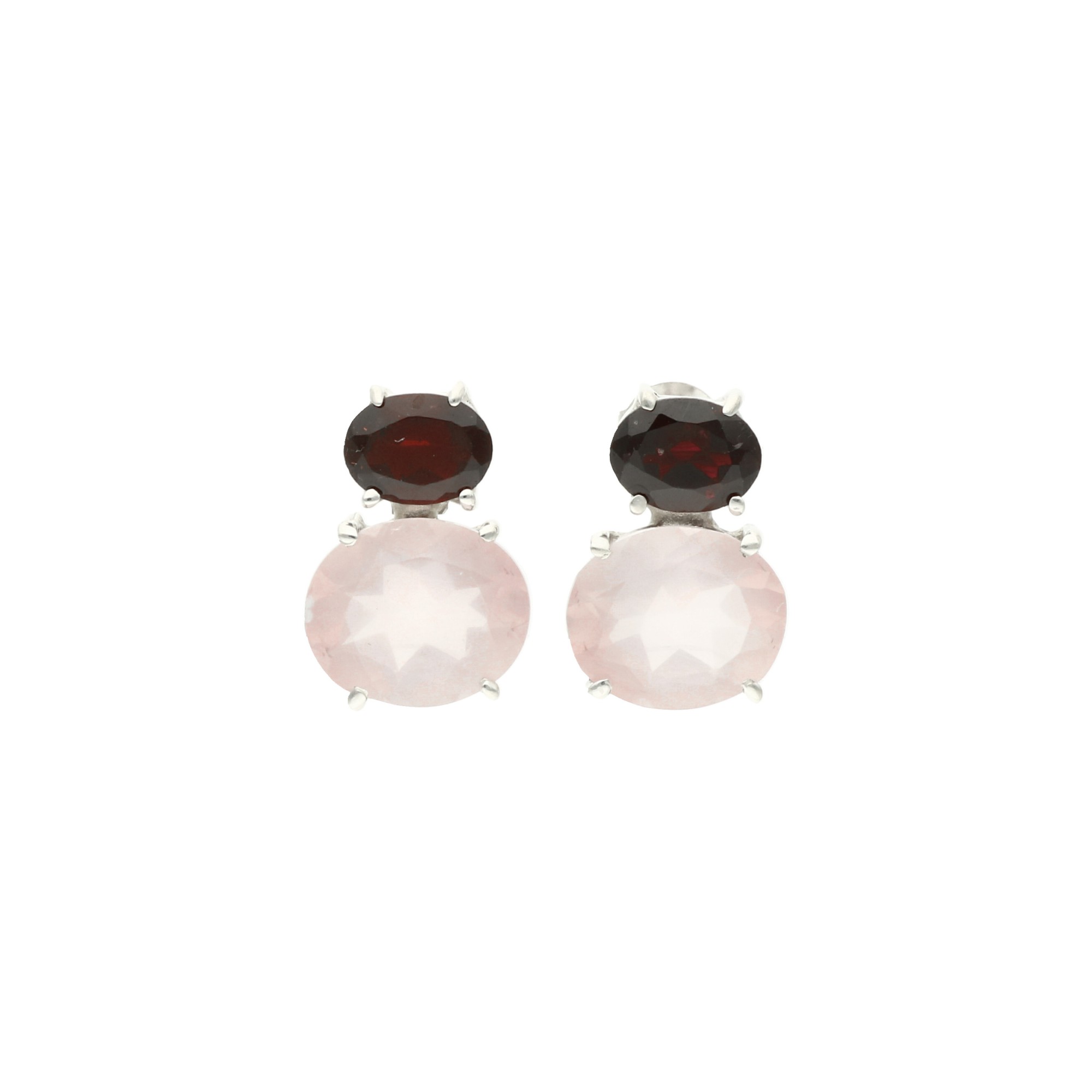 Intrygujące kolczyki z kamieniami naturalnymi oprawionymi w srebro zachwycają kontrastowym połączeniem kolorów. Granat i kwarc różowy tworzą wyjątkowo efektowny duet, który doskonale uzupełni różne stylizacje, dodając im barw i szyku. To oryginalna biżuteria, którą warto mieć w swojej kolekcji!