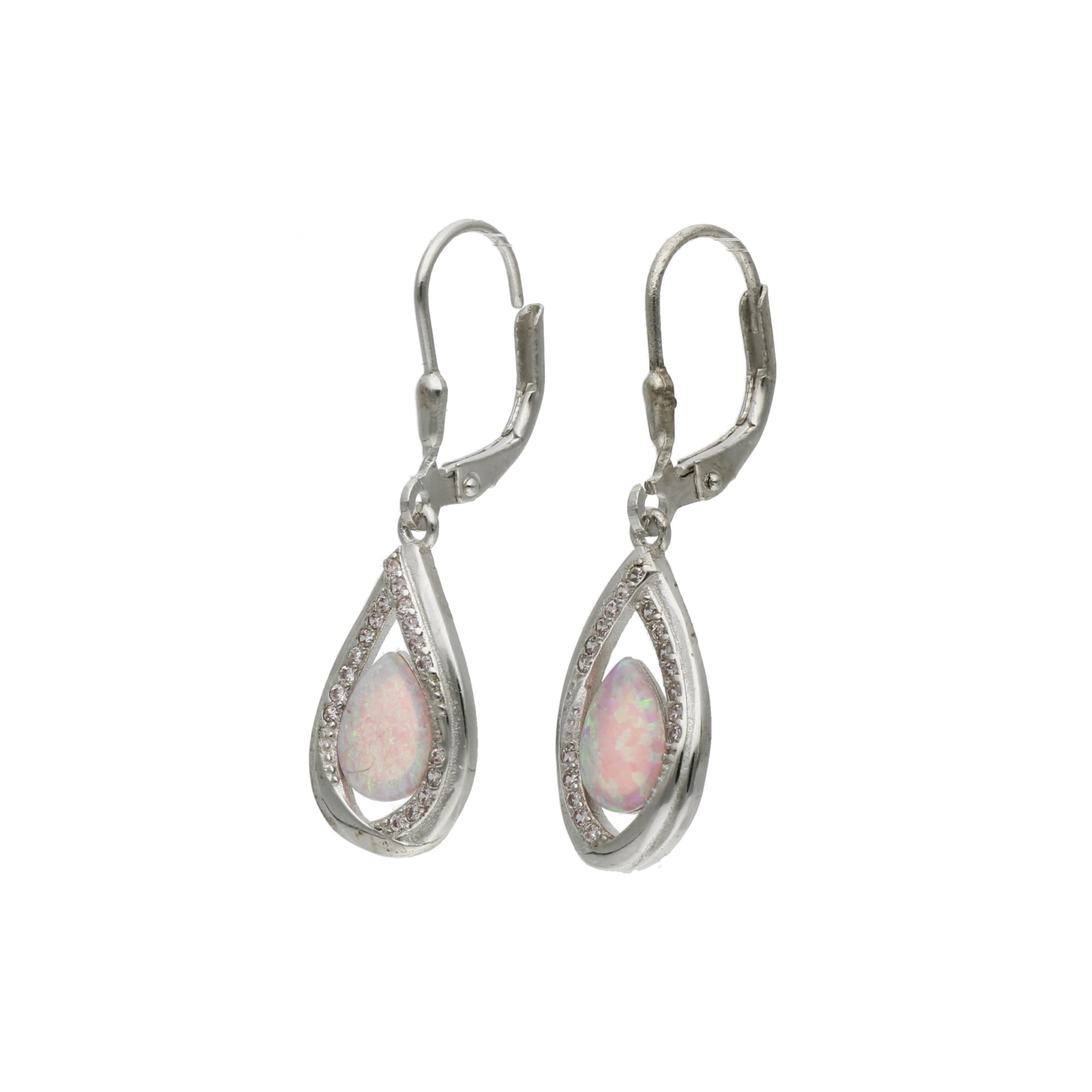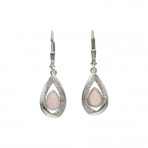 Srebrne kolczyki w kształcie kropli, ozdobione opalem i przezroczystymi cyrkoniami, to niezwykle szykowna ozdoba, która może towarzyszyć Ci podczas ważnych okazji. Doskonale uzupełni eleganckie i wieczorowe stylizacje, pasuje także do romantycznych i kobiecych kreacji. Ponadczasowy wzór sprawia, że ozdoba będzie modna i gustowna bez względu na chwilowe trendy.