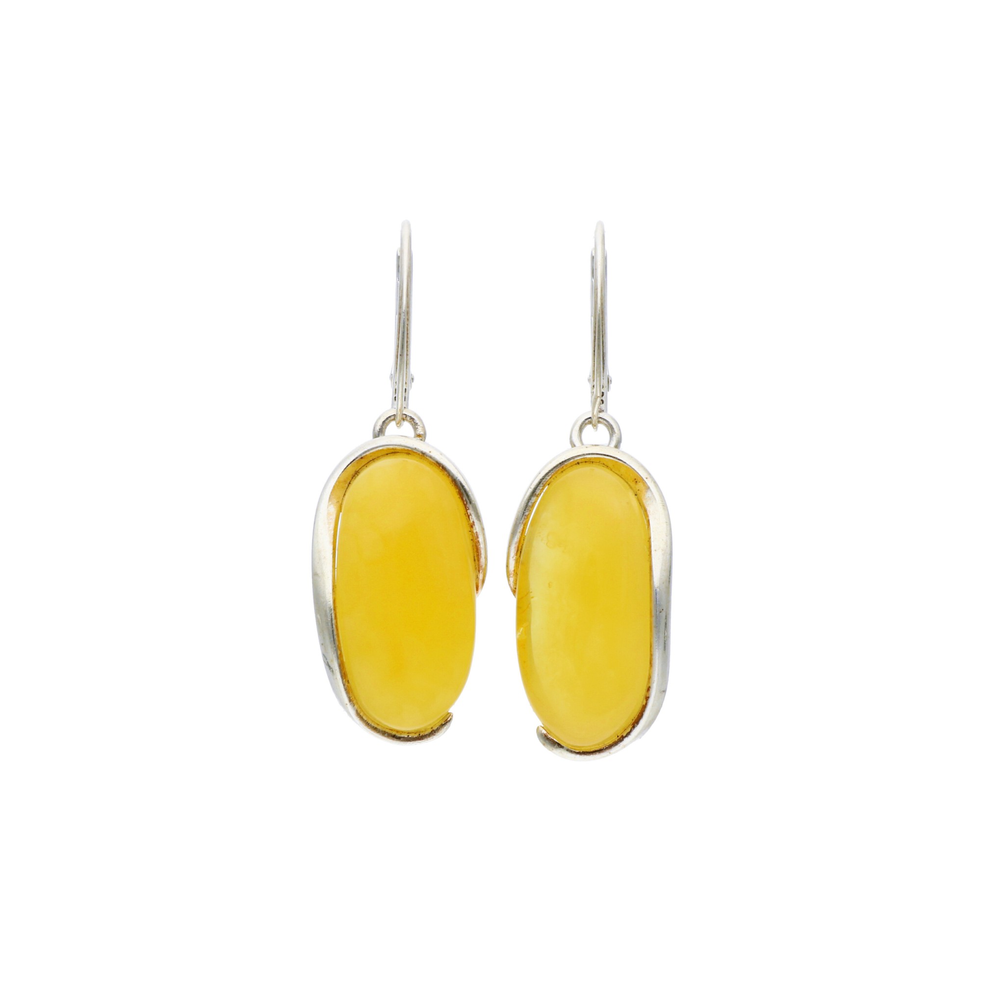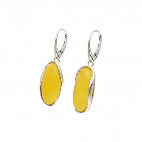 Srebrne kolczyki z żółtym bursztynem