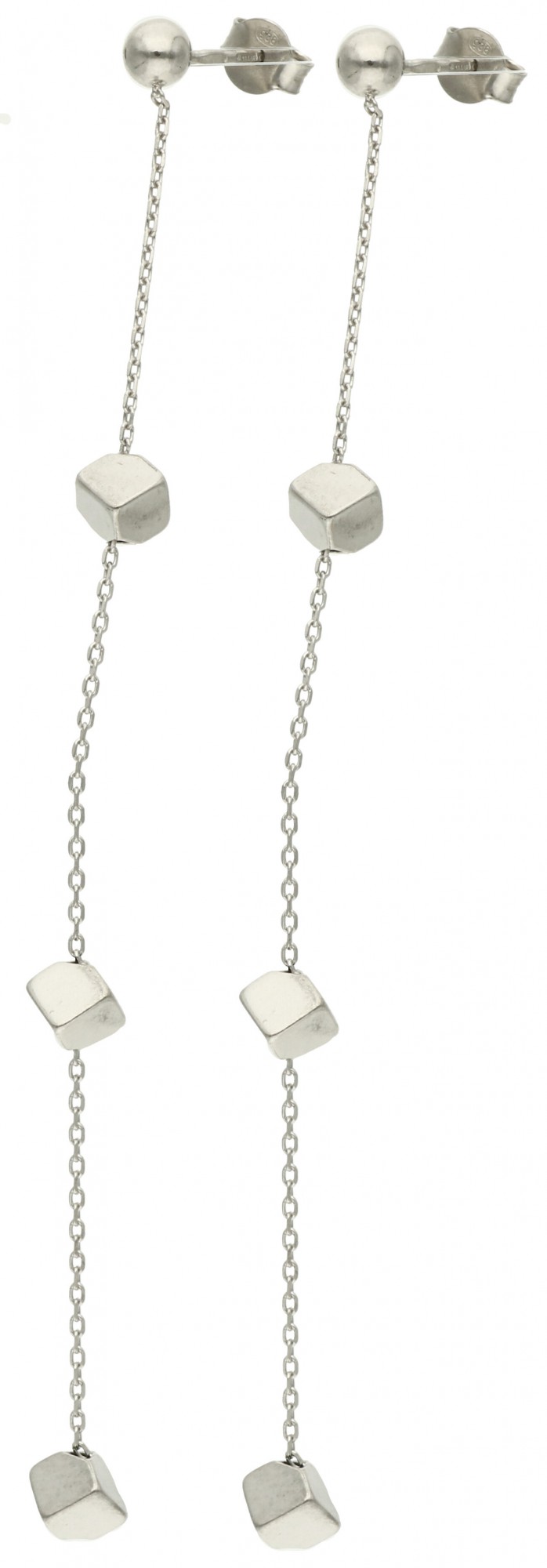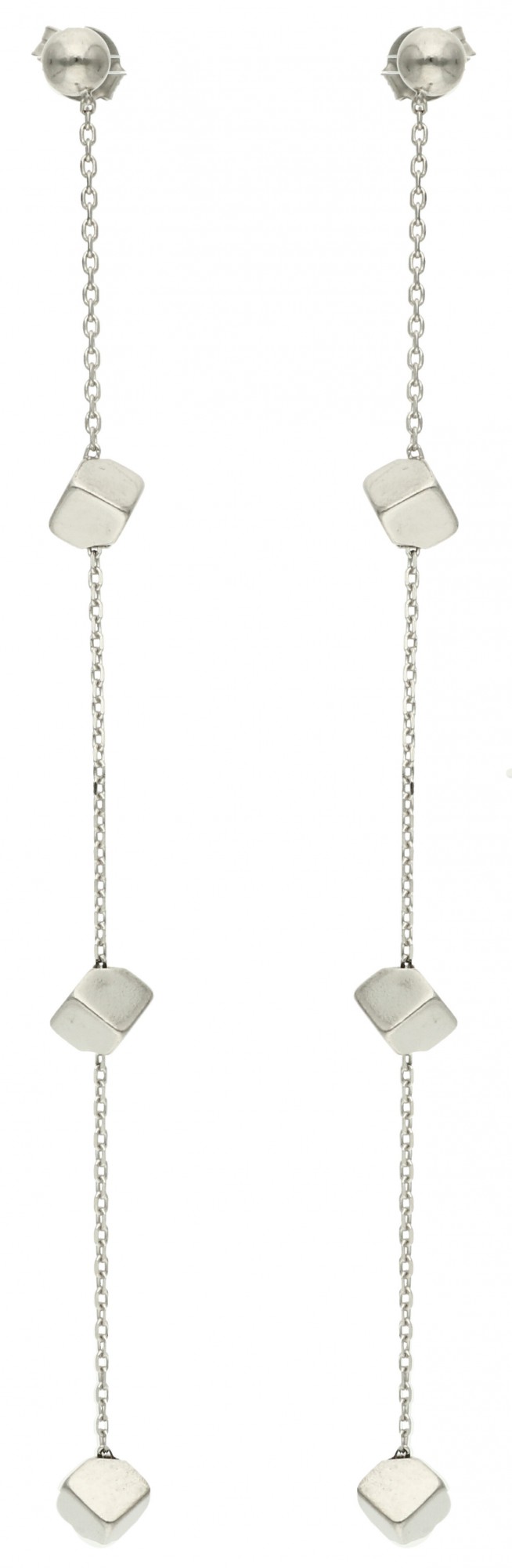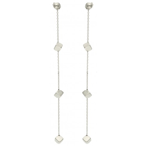 Wiszące kolczyki z małymi sześcianami to doskonały dodatek dla kobiet, które cenią nowoczesne dodatki i dobrze czują się w długich kolczykach. Subtelna, minimalistyczna biżuteia doda seksapilu każdej stylizacji, optycznie wyszczupli twarz oraz podkreśli makijaż.