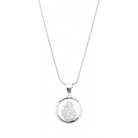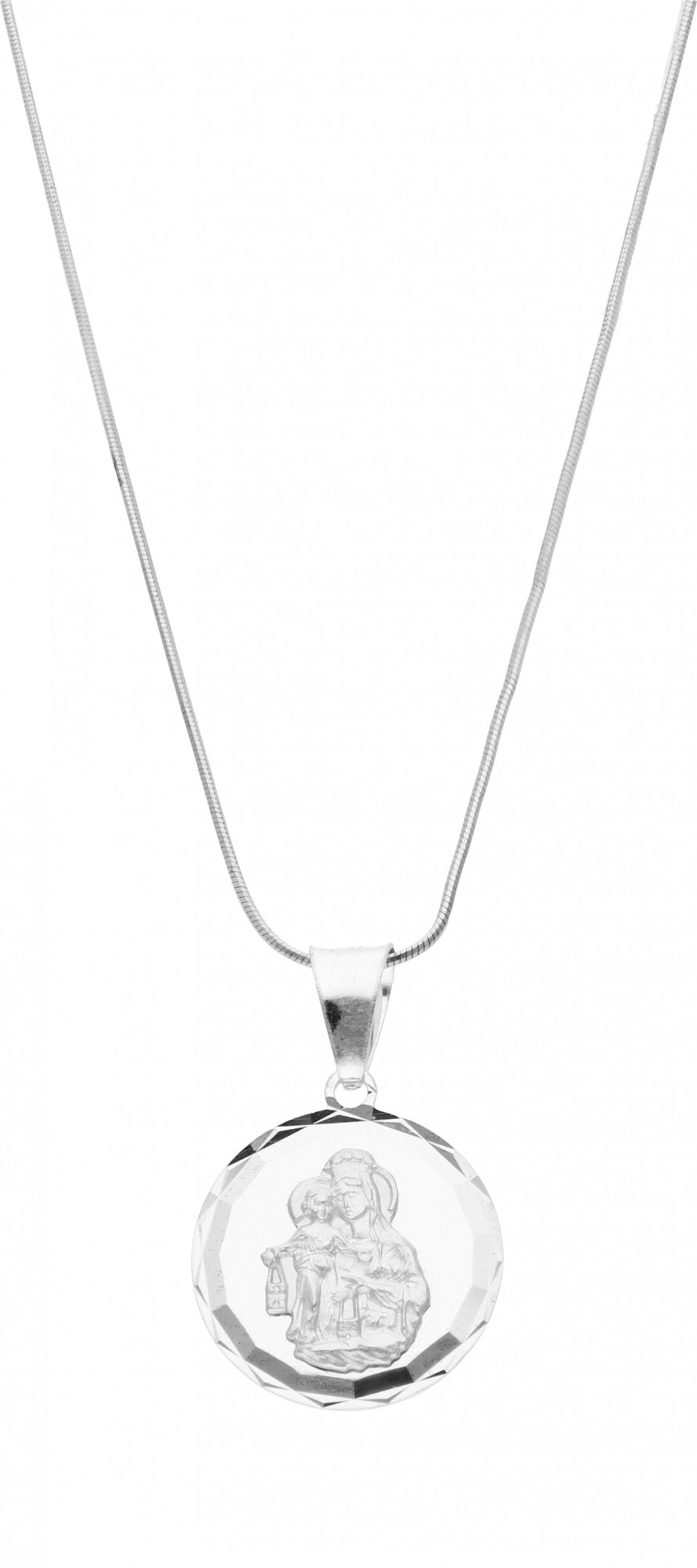 Mały, okrągły medalik z diamentowaną krawędzią przedstawia Matkę Boską z Dzieciątkiem. Został wykonany ze srebra wysokiej jakości (próba 925) i stanowi piękny, ponadczasowy symbol wiary, który może towarzyszyć Ci każdego dnia.