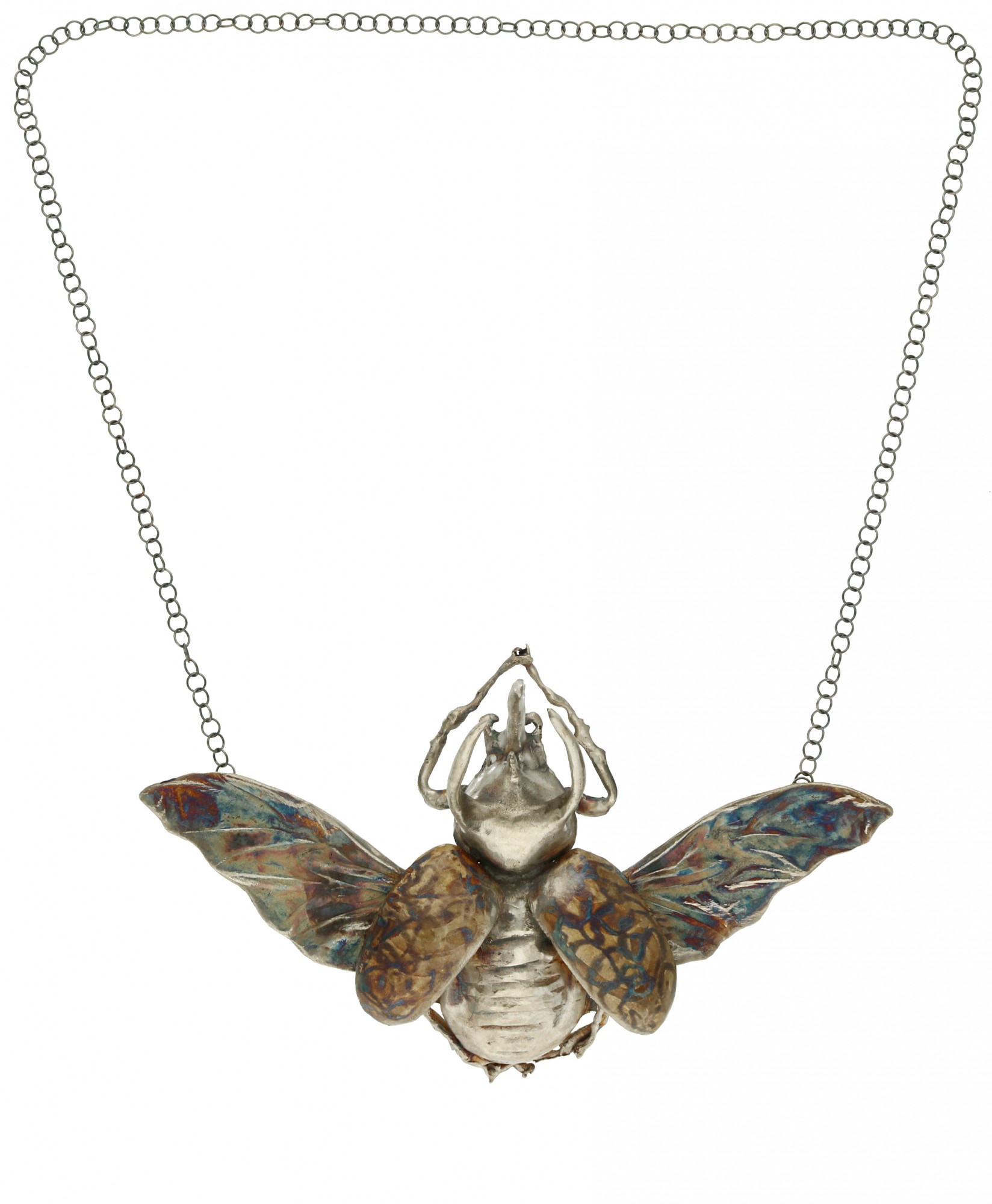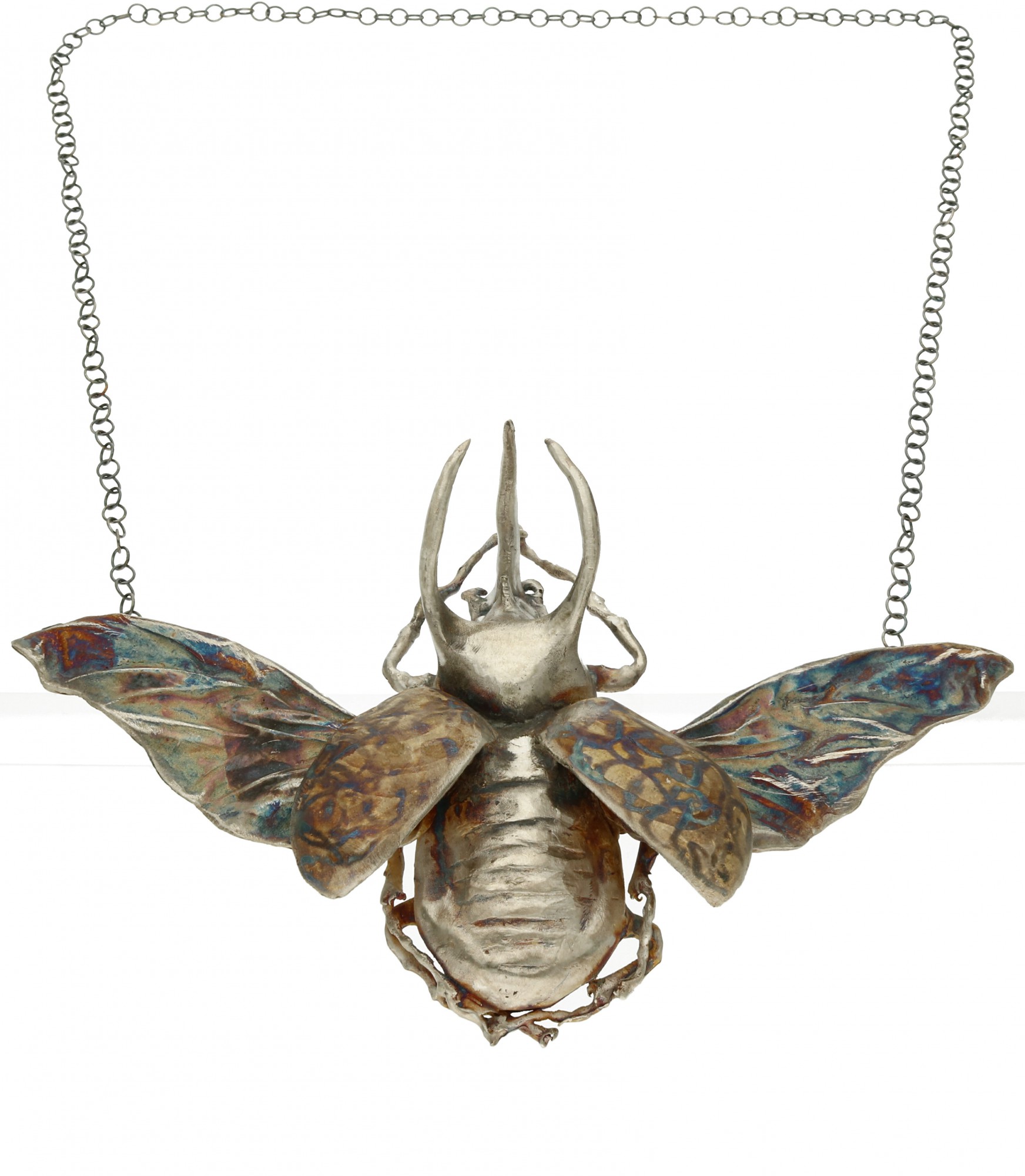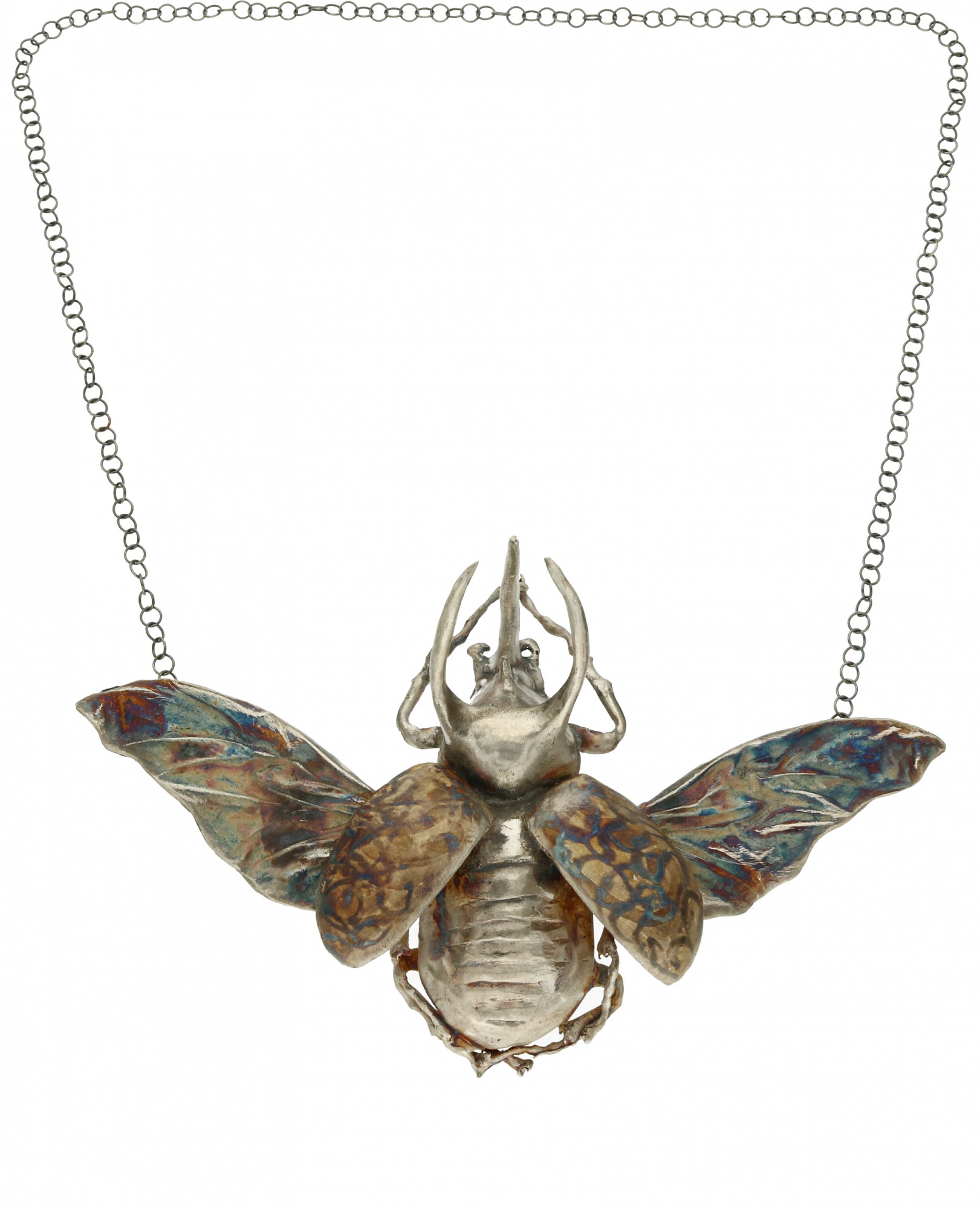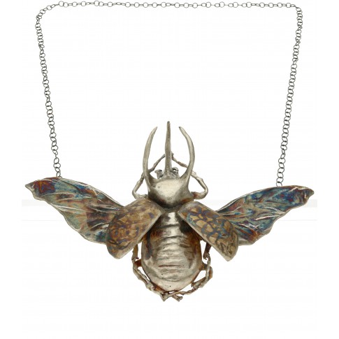 Imponujący naszyjnik szuka kobiety, która ceni oryginalność! Srebrny Rohatyniec z otwartymi skrzydłami pokrytymi oksydą tęczową intryguje i jest nieszablonowym dodatkiem. Ta ozdoba udowadnia, że jubilerstwo jest sztuką.