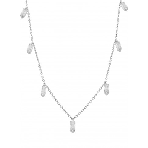 Subtelny naszyjnik z przywieszkami wykonanymi z cyrkonii to delikatna, niezwykle dziewczęca biżuteria. Doskonale uzupełni swobodne, codzienne stylizacje, modne kreacje i looki w klimacie boho, glamour czy romantycznym. Ozdoba jest niebanalna i przyciąga wzrok — z pewnością pokochasz ją od pierwszego wejrzenia!