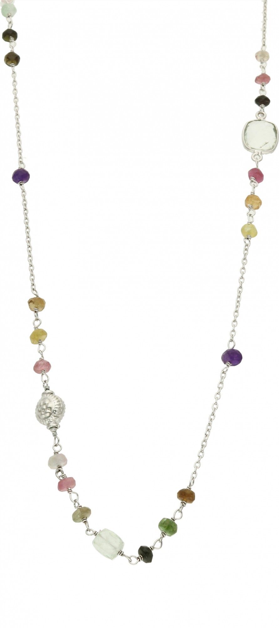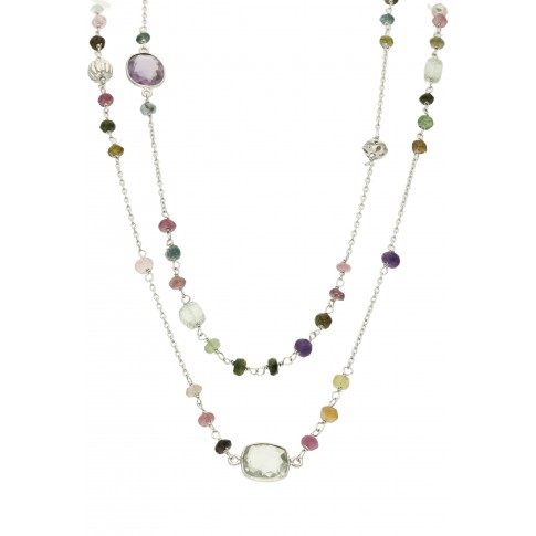 Niezwykły naszyjnik z kamieniami w różnych barwach to zachwycająca biżuteria, która doda niepowtarzalnego charakteru każdej stylizacji. Kunsztownie wykonany dodatek można nosić jako bardzo długi łańcuszek lub złożyć na pół, uzyskując podwójny, krótszy naszyjnik. Ta oryginalna, pełna klasy ozdoba poszukuje właścicielki o kreatywnej duszy, obdarzonej dużą wyobraźnią i lubiącej podkreślać własny styl.