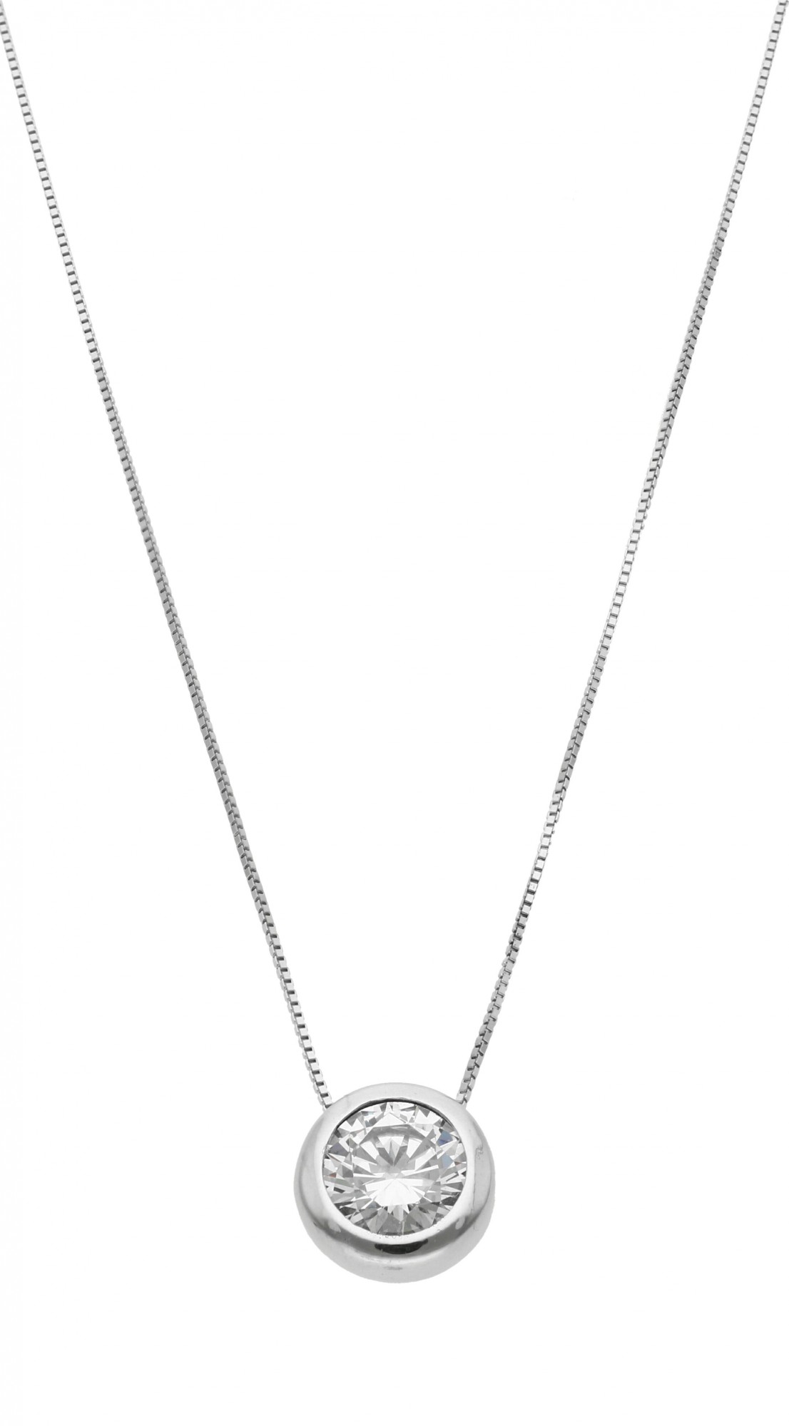 Minimalistyczny naszyjnik z okrągłą zawieszką przyciąga wzrok prostym, niezwykle kobiecym projektem. Dzięki bezbarwnej cyrkonii dodaje subtelnego blasku każdej stylizacji, doskonale dopasowując się do romantycznych ubiorów, letnich sukienek i zwiewnych bluzek. To także wymarzona ozdoba do eleganckich stylizacji, którym doda lekkości i wdzięku, idealnie podkreślając Twój styl.
