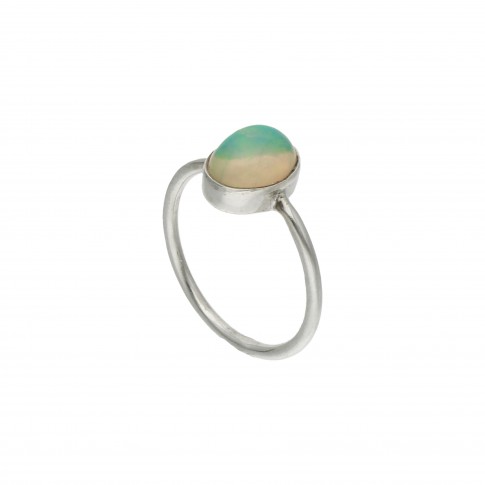 Minimalistyczny pierścionek z opalem zachwyca ponadczasową, pełną prostoty formą. Nieco surowy design doskonale dopasuje się do codziennych stylizacji, zwłaszcza jeśli lubisz styl vintage, boho lub naturalny. Pierścionek jest wygodny i stanowi idealny wybór dla miłośniczek przyrody i kamieni naturalnych.