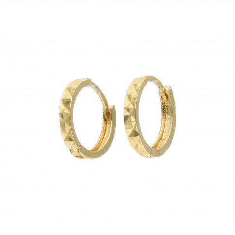 Efektowne kolczyki koła o diamentowanej powierzchni to nowoczesna biżuteria, która rewelacyjnie wpisuje się w najnowsze trendy. Ozdoba została wykonana z żółtego złota (próba 585) i mimo niewielkich rozmiarów doskonale podkreśli Twoje wyczucie stylu i dopasuje się do modnych outfitów. Kolczyki zaskakują swoją wszechstronnością: świetnie prezentują się zarówno w eleganckich stylizacjach, jak i odważnych kreacjach typu streetwear! Do jakiego outfitu dopasujesz swoją parę?