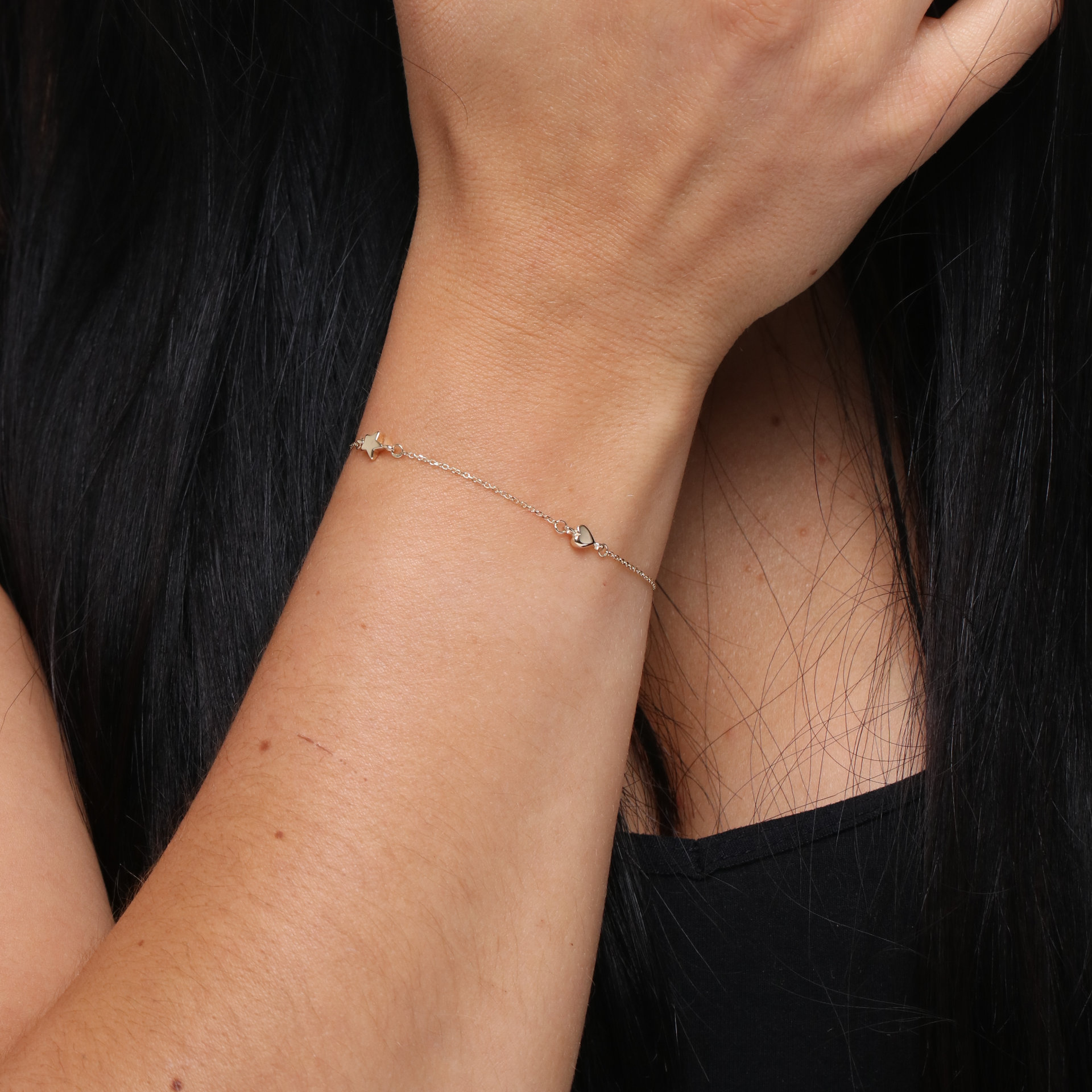 Bransoletka z motywem serca, gwiazdy i księżyca to subtelny dodatek dla dziewczyny, która lubi delikatną biżuterię wysokiej jakości. Żółte złoto doda klasy i elegancji codziennym outfitom, a dzięki minimalistycznemu projektowi ozdoba może towarzyszyć swojej właścicielce każdego dnia. To także świetny pomysł na prezent na osiemnastkę, rocznicę lub z okazji życiowego sukcesu.