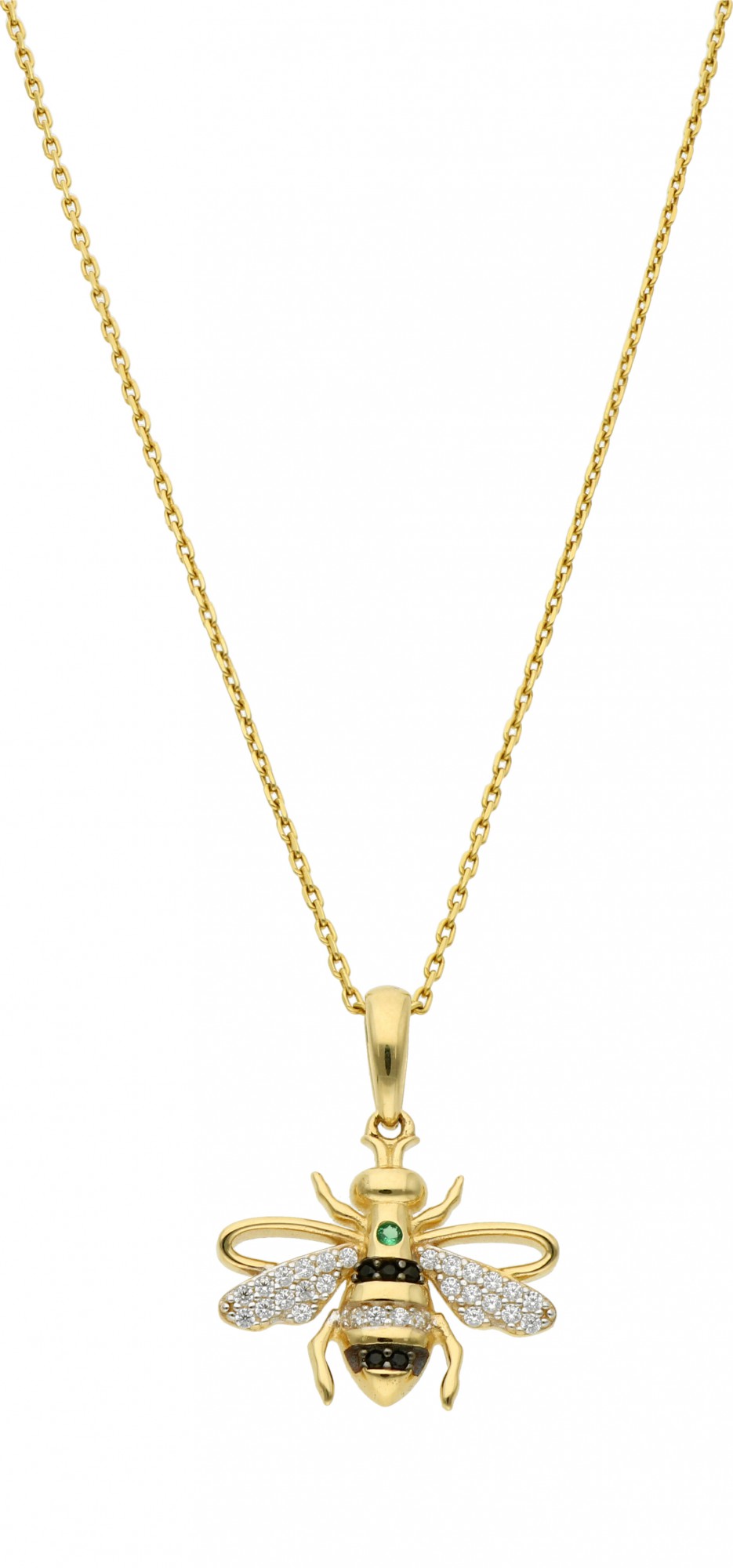 Oryginalna złota zawieszka z motywem osy lub pszczółki, ozdobiona przezroczystymi cyrkoniami, to niebanalny dodatek dla kobiet, które kochają naturę i uwielbiają wyrażać swój styl. Delikatna biżuteria stanowi intrygujący akcent w każdej stylizacji i świetnie uzupełni różne outfity, podreślając kreatywność swojej właścicielki.