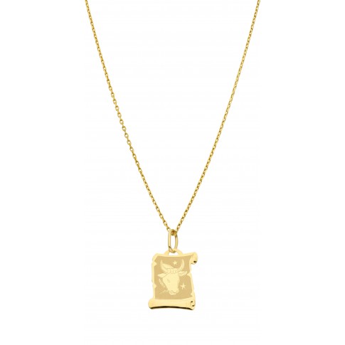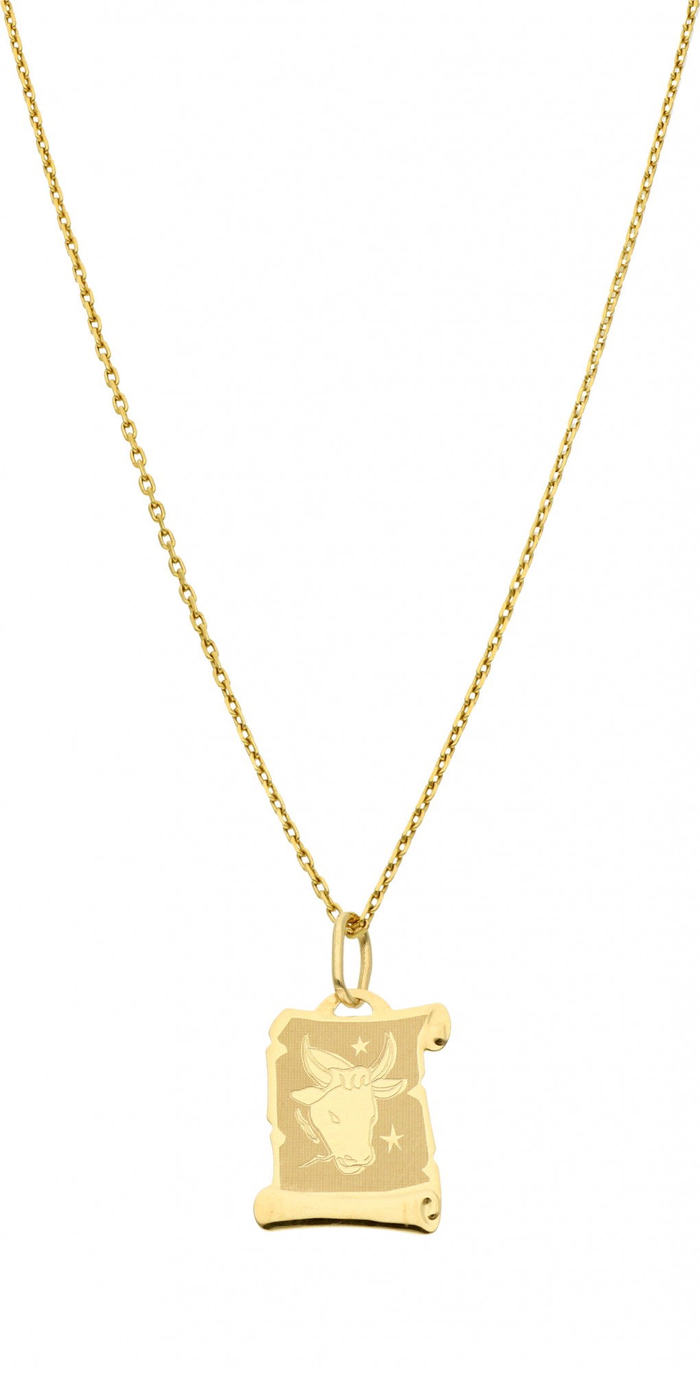 Zodiakalne Byki są dobrze zorganizowane i zrównoważone. Twardo stąpają po ziemi i można na nich polegać. Jeśli Twój znak zodiaku jest Ci szczególnie bliski, warto mieć jego symbol zawsze przy sobie - zwłaszcza w tak gustownej formie! Nasza zawieszka z żółtego złota przypomina zwój pergaminu z grawerem głowy byka. To delikatna biżuteria, która z łatwością dopasuje się do każdej stylizacji i może towarzyszyć Ci tak często, jak zechcesz.