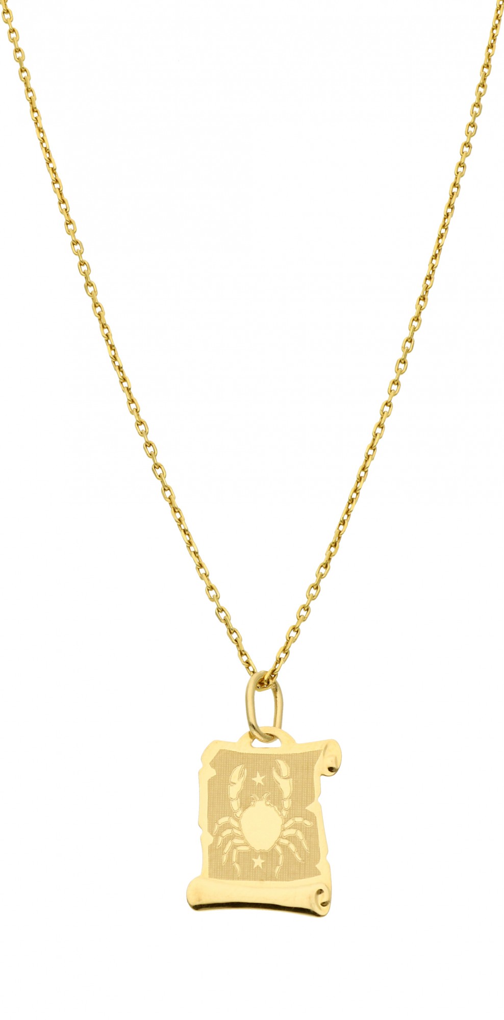 Jesteś spod znaku Raka? Złota zawieszka w kształcie zwoju pergaminu, z kunsztownie wygrawerowanym symbolem, może przypominać Ci o tym każdego dnia. Niewielka, gustowna ozdoba rozświetli stylizacje, podkreśli Twoją klasę i niezawodnie poprawi samopoczucie, gdy będziesz tego potrzebować.