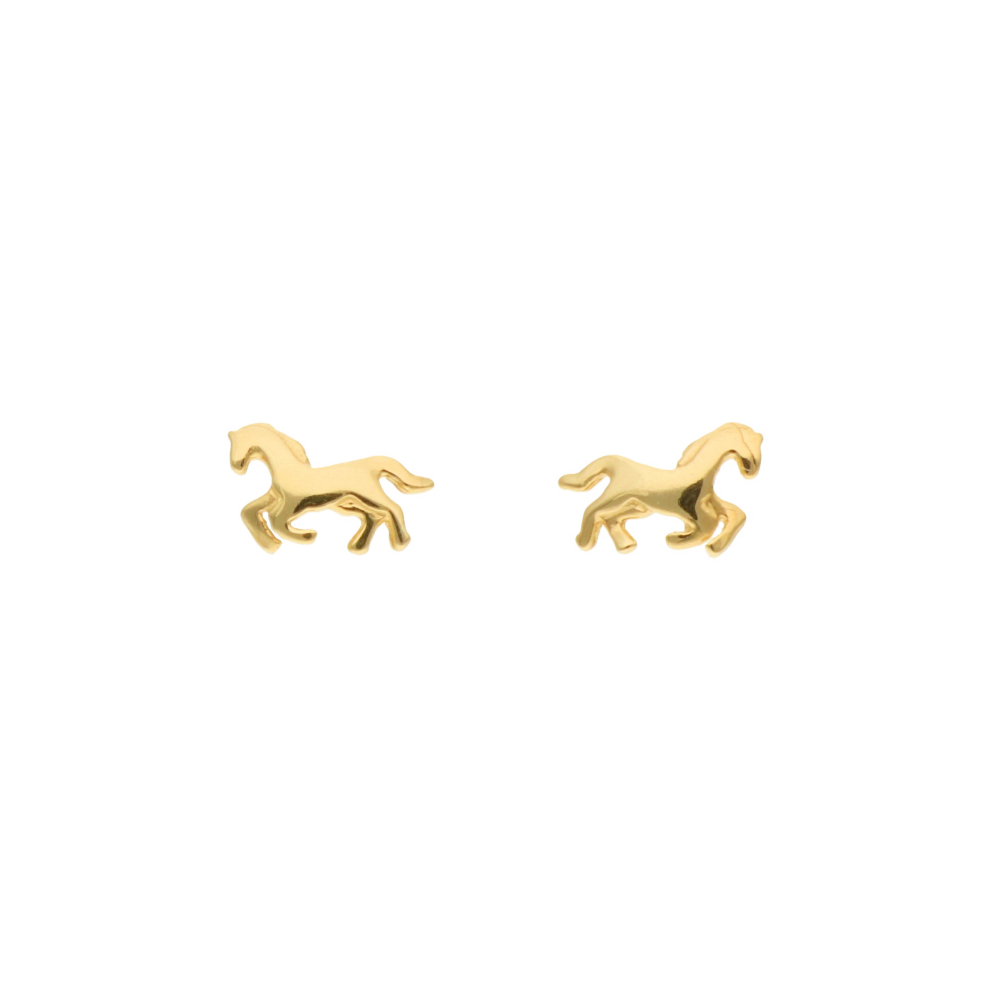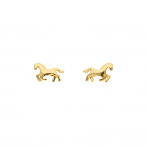 Delikatne kolczyki z żółtego złota, z motywem galopujących koni, to rewelacyjny dodatek na każdą okazję. Subtelna ozdoba na zapięciu typu sztyft jest bardzo wygodna i prezentuje się niezwykle kobieco. Może być dodatkiem do codziennych stylizacji lub nawet... stanowić szczęśliwy talizman na zawodach jeździeckich.