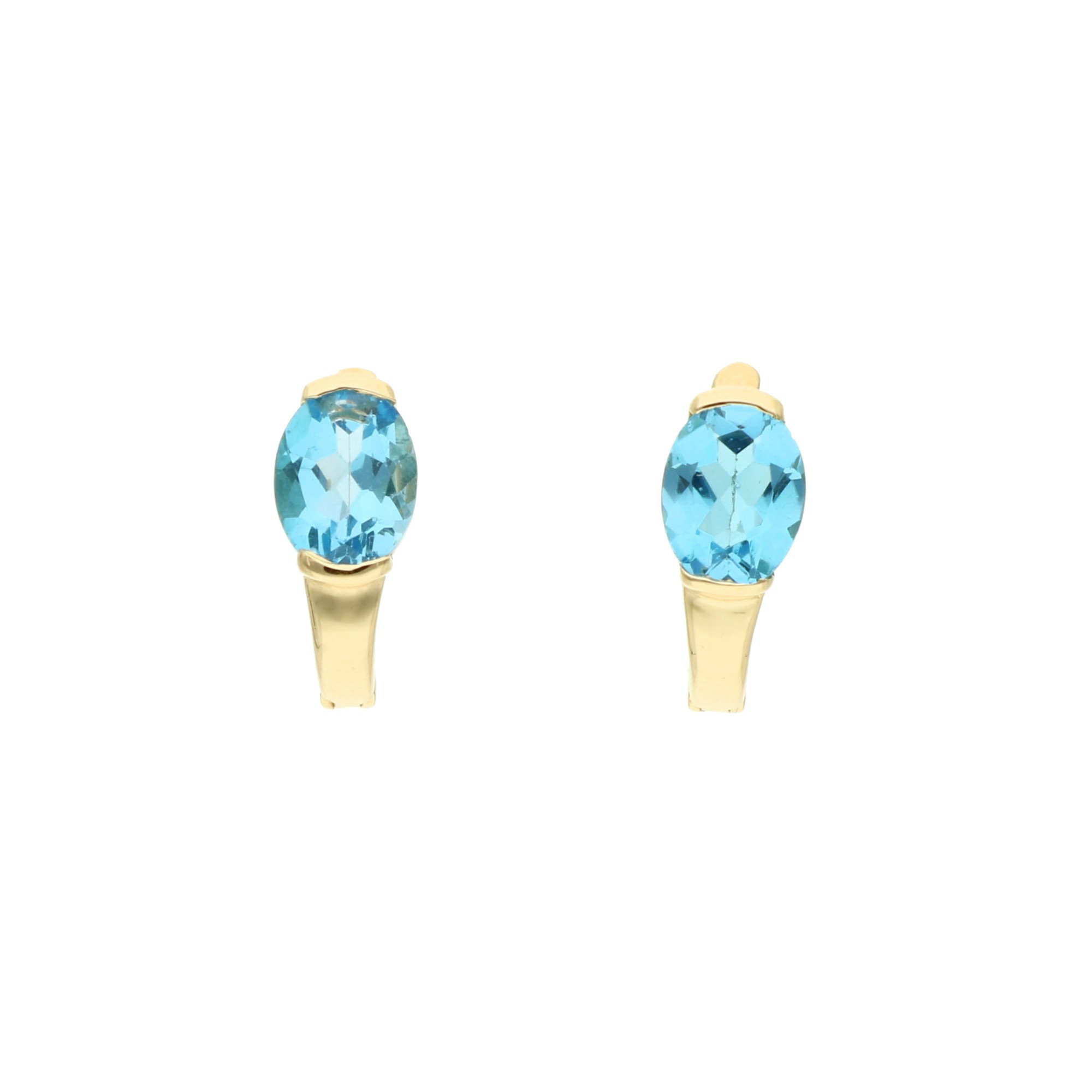 Dzięki minimalistycznej formie kolczyków niebieski topaz gra tutaj pierwsze skrzypce. Hipnotyzuje głębią koloru i podkreśla kolor oczu swojej właścicielki. Wygodne angielskie zapięcie pozwala mieć pewność, że kolczyki pozostaną na swoim miejscu tak długo, jak zechcesz.